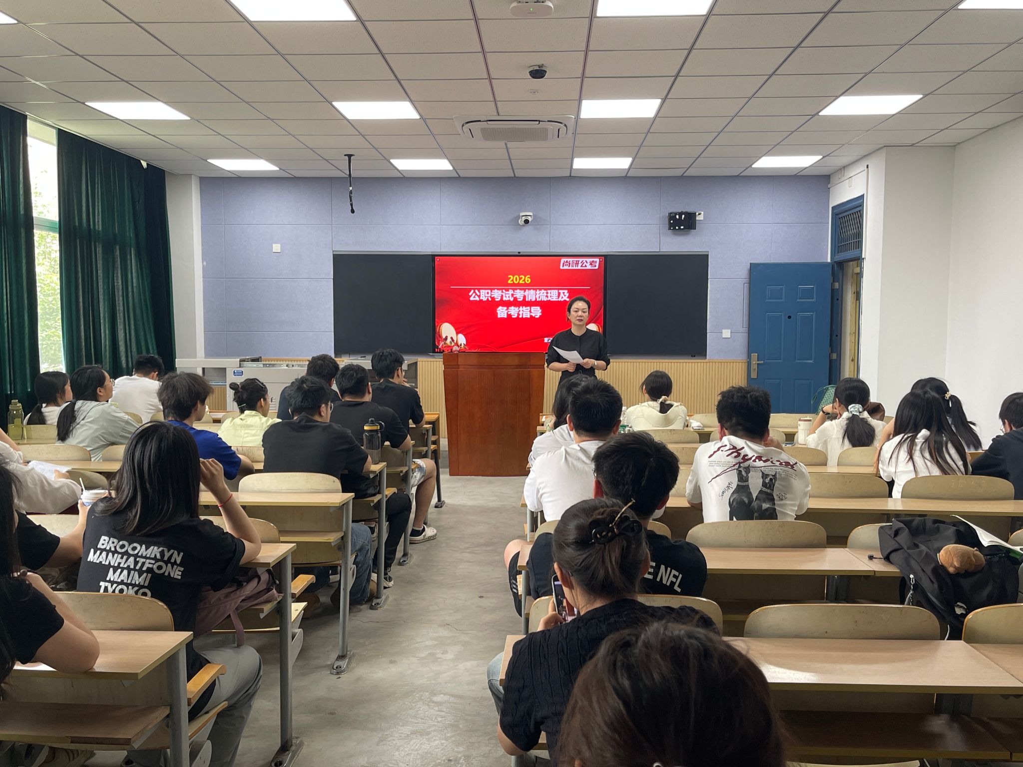 為助力2026屆畢業(yè)生科學(xué)備戰(zhàn)公務(wù)員考試,精準(zhǔn)把握考情趨勢(shì),提升應(yīng)試能力。5月7日下午,人文學(xué)院在博覽樓A105舉辦“2026年公職考試考情梳理及備考指導(dǎo)”專題講座。本次活動(dòng)由人文學(xué)院聯(lián)合尚研公考共同發(fā)起,人文學(xué)院黨委副書記盛丹、尚研公考名師王蘅、2021級(jí)輔導(dǎo)員張馨元出席活動(dòng),人文學(xué)院與經(jīng)管學(xué)院意向考公學(xué)生到場(chǎng)參與。