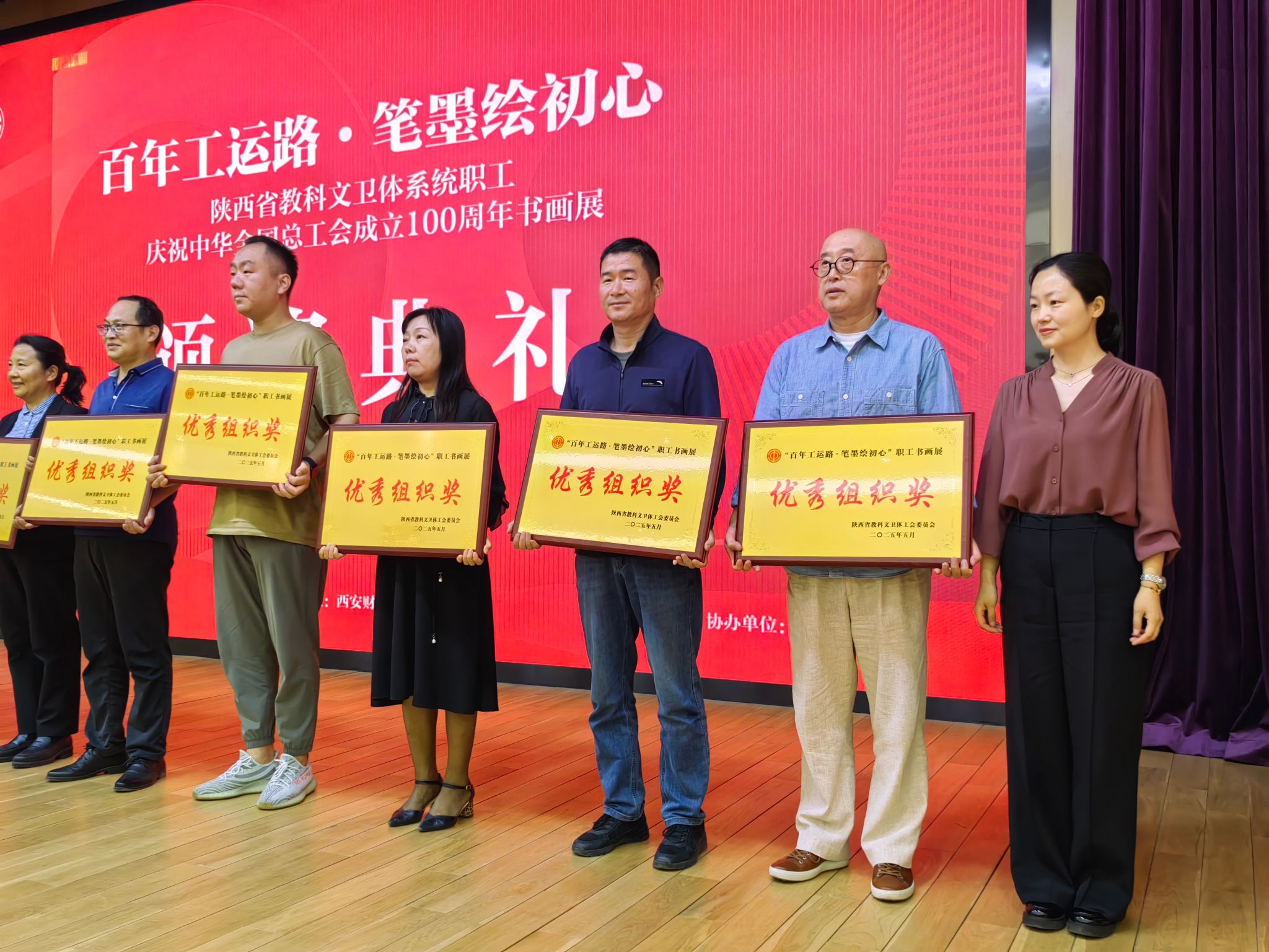 為慶祝中華全國總工會成立100周年,5月9日上午,“百年工運路·筆墨繪初心”陜西省教科文衛(wèi)體系統(tǒng)職工書畫展在陜西省圖書館盛大開幕。