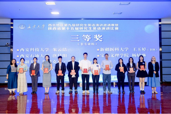 5月9日至11日,“西北地區(qū)第九屆研究生英語演講邀請賽暨陜西省第十五屆研究生英語演講比賽”在長安大學渭水校區(qū)會議中心隆重舉行。經(jīng)過指定題目演講、即席演講、現(xiàn)場問答等環(huán)節(jié)激烈角逐,我校外國語學院2023級碩士研究生孫瑩在陳柯、張虹老師的指導下榮獲英語專業(yè)組三等獎,人文學院2024級研究生唐晨陽在張虹、李濤老師的指導下榮獲非英語專業(yè)組三等獎。