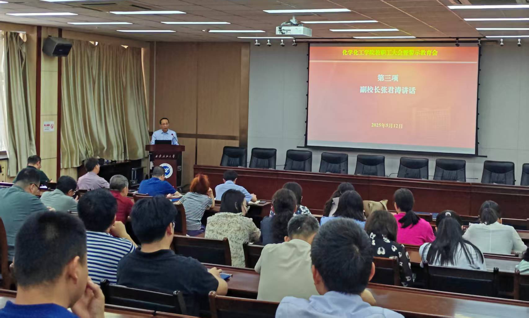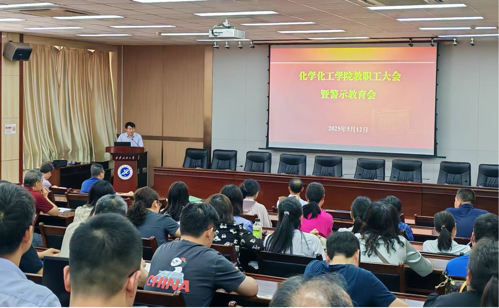 為深入貫徹中央八項規(guī)定精神學習教育,全面推進學院年度重點工作,持續(xù)強化教職工作風建設(shè),5月12日下午,化學化工學院教職工大會暨警示教育會在雁塔校區(qū)會議中心第五會議室召開,學院全體教職工參會,會議由學院黨委書記高小明主持。