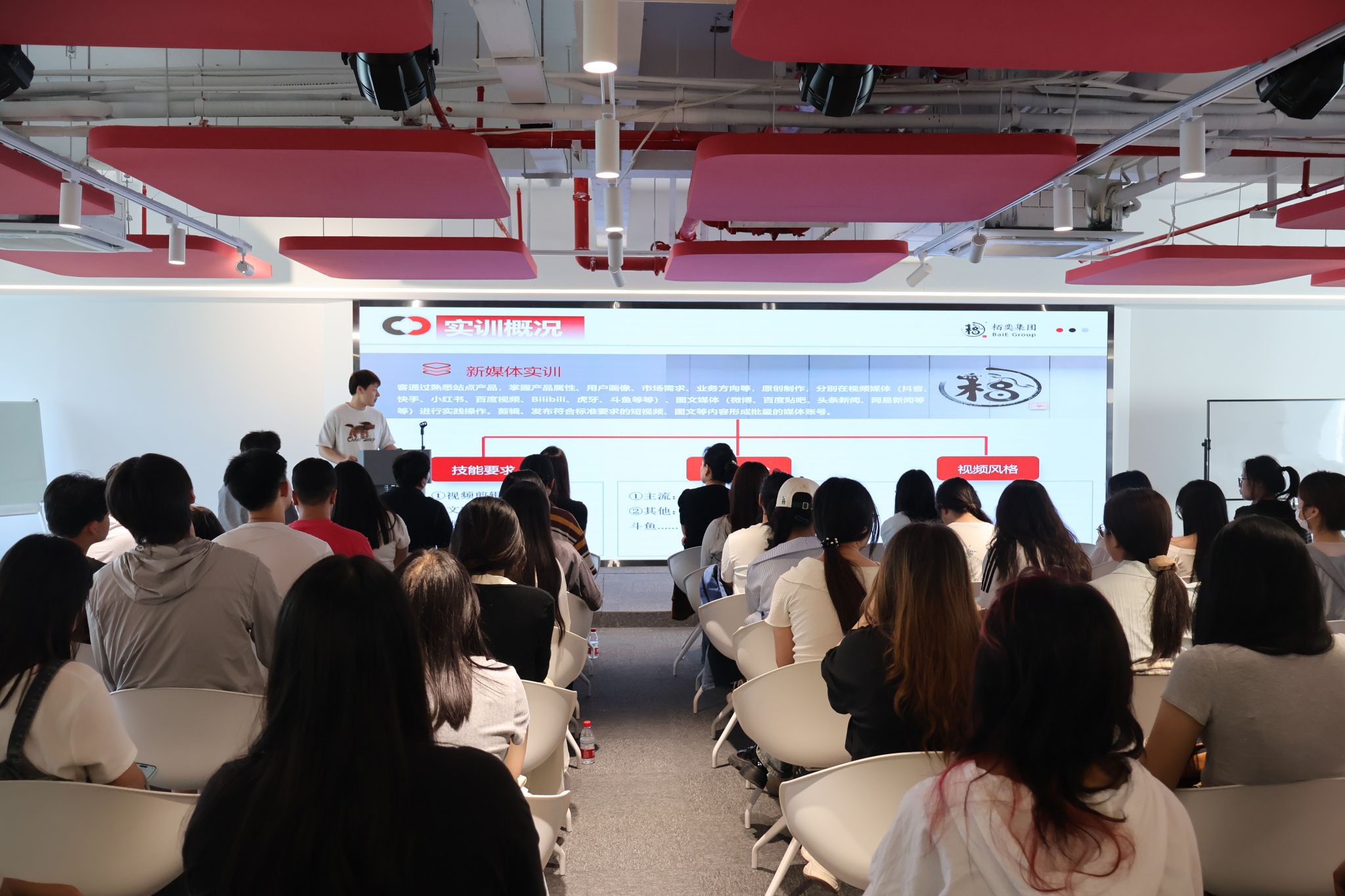 隨后,“刺氪”項(xiàng)目負(fù)責(zé)人王君詳細(xì)講解了短視頻行業(yè)的商業(yè)邏輯,涵蓋趨勢(shì)分析、內(nèi)容制作、軟件運(yùn)營(yíng)及數(shù)據(jù)分析等環(huán)節(jié)。技術(shù)指導(dǎo)崔瀚文則結(jié)合案例,拆解了游戲類短視頻的制作類型與全流程。人力資源總監(jiān)王汐妍介紹了“產(chǎn)教融合新媒體實(shí)訓(xùn)營(yíng)”的培訓(xùn)方式、地點(diǎn)、要求、職業(yè)發(fā)展路徑、實(shí)訓(xùn)就業(yè)等具體情況。同學(xué)們圍繞“零經(jīng)驗(yàn)如何入行”“行業(yè)發(fā)展趨勢(shì)”等話題踴躍提問(wèn),并表示對(duì)實(shí)訓(xùn)營(yíng)非常感興趣,主動(dòng)加群報(bào)名。