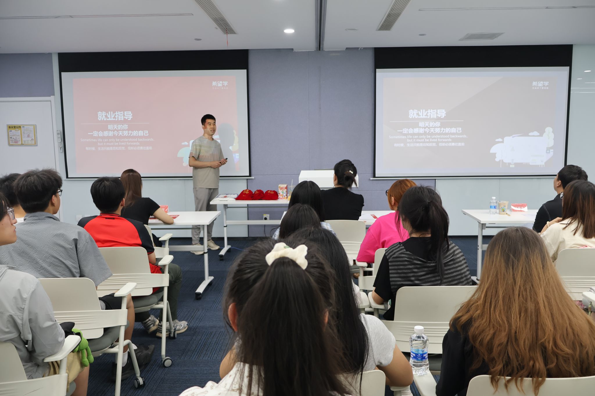 希望學(xué)人力資源負(fù)責(zé)人王鈺佳向?qū)W院師生介紹了機(jī)構(gòu)背景與發(fā)展歷程,通過(guò)云游博物館、吉木乃縣教育公益等項(xiàng)目案例,展示了企業(yè)教育理念與社會(huì)責(zé)任;并詳細(xì)說(shuō)明了希望學(xué)“主講教師+班主任”雙師模式的崗位職責(zé)、福利待遇及兼職實(shí)習(xí)崗位的招聘要求。
