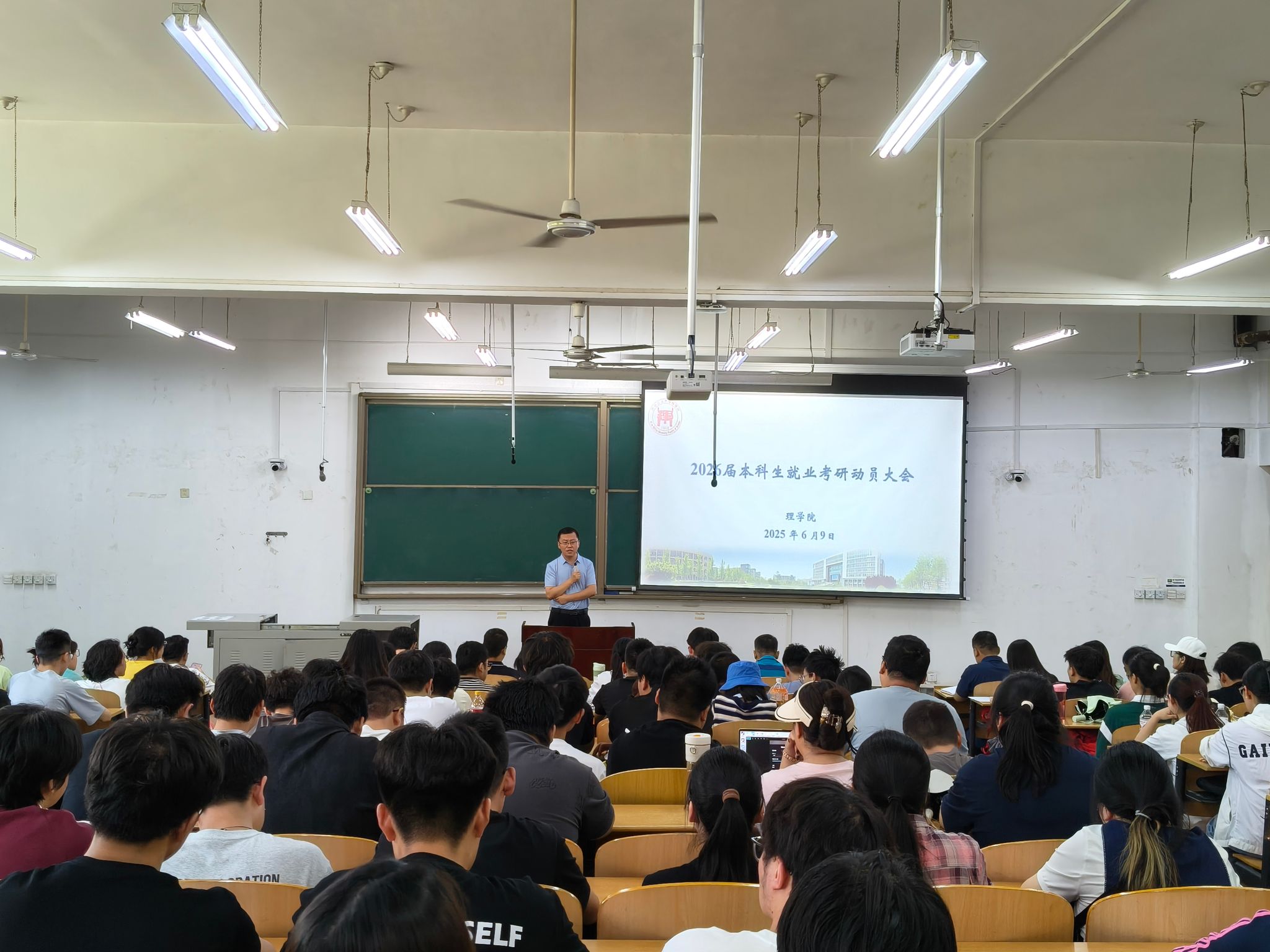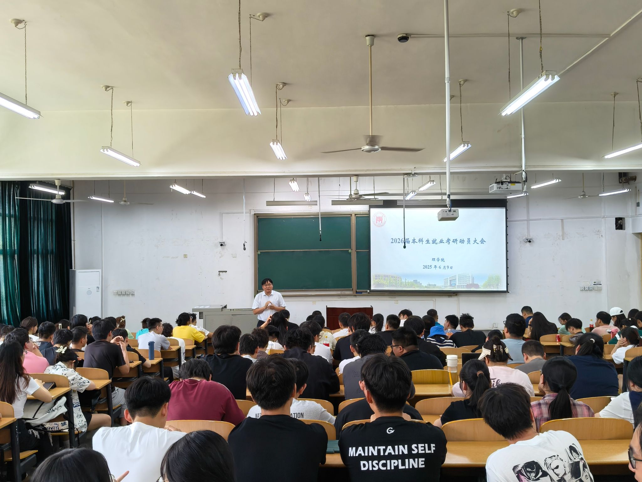 為扎實(shí)做好2026屆本科生就業(yè)考研工作,助力學(xué)生明確職業(yè)目標(biāo),提升就業(yè)和考研競爭力,6月9日,理學(xué)院在鄠邑校區(qū)博思樓B125教室召開2026屆畢業(yè)生就業(yè)考研動(dòng)員大會(huì)。學(xué)院院長折延宏,黨委副書記楊富民出席大會(huì),應(yīng)用物理系副主任丁繼軍、應(yīng)用數(shù)學(xué)系副主任馬儇龍以及2026屆全體本科畢業(yè)生參加大會(huì)。會(huì)議由學(xué)生工作辦公室副主任龐波主持。