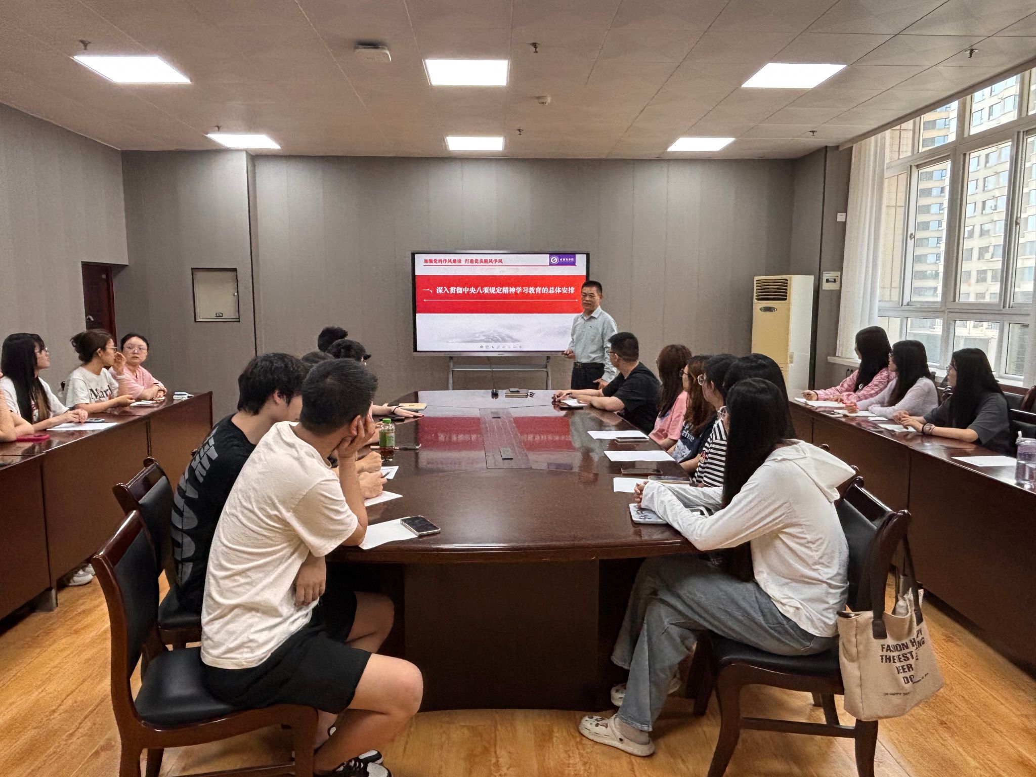 為推進(jìn)深入貫徹中央八項規(guī)定精神學(xué)習(xí)教育走深走實,根據(jù)學(xué)校黨委學(xué)習(xí)教育實施方案的要求,612下午,計算機(jī)學(xué)院黨委書記龐秉謙在雁塔校區(qū)東方石油樓404會議室為研究生黨員講授了題為加強(qiáng)黨的作風(fēng)建設(shè)  打造優(yōu)良院風(fēng)學(xué)風(fēng)專題黨課。2022、2023級研究生黨員30余人參加。