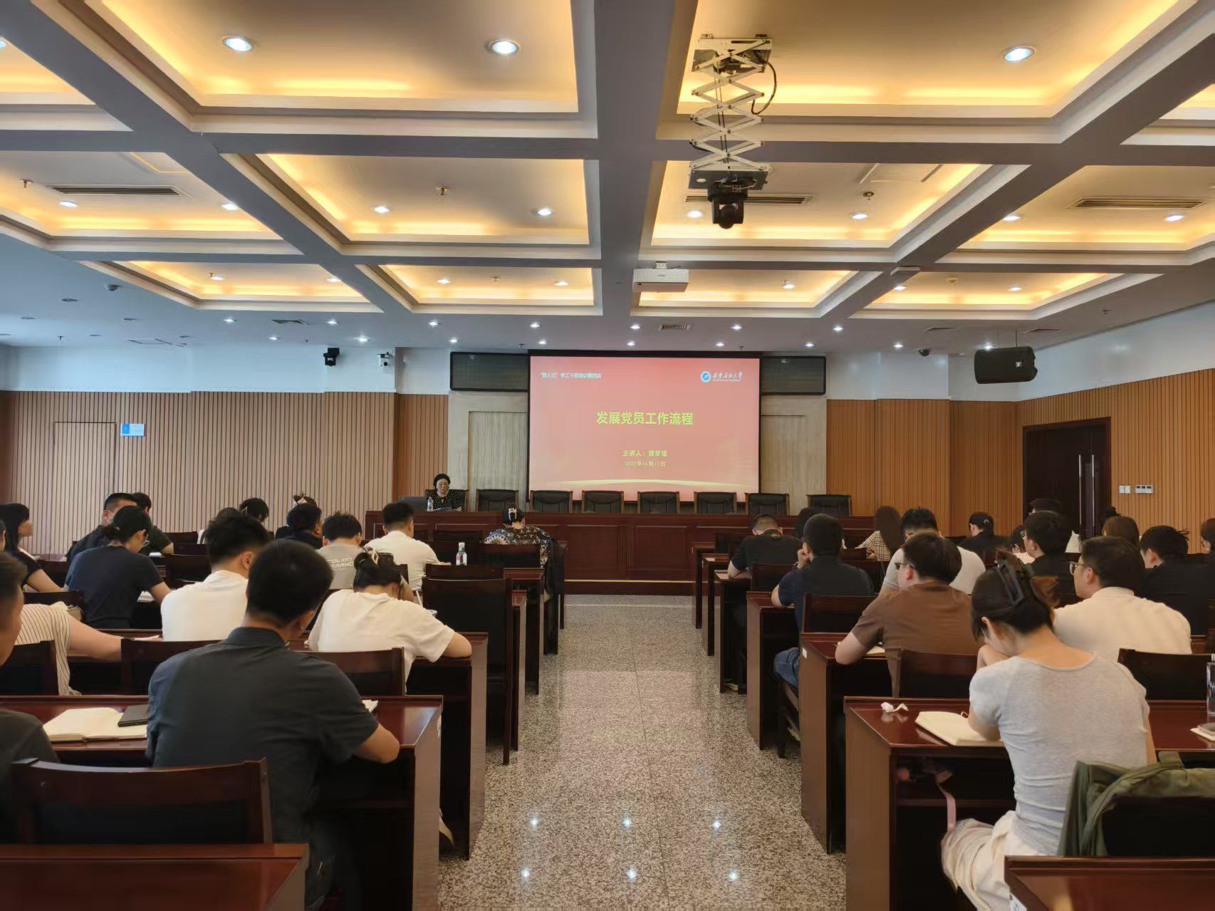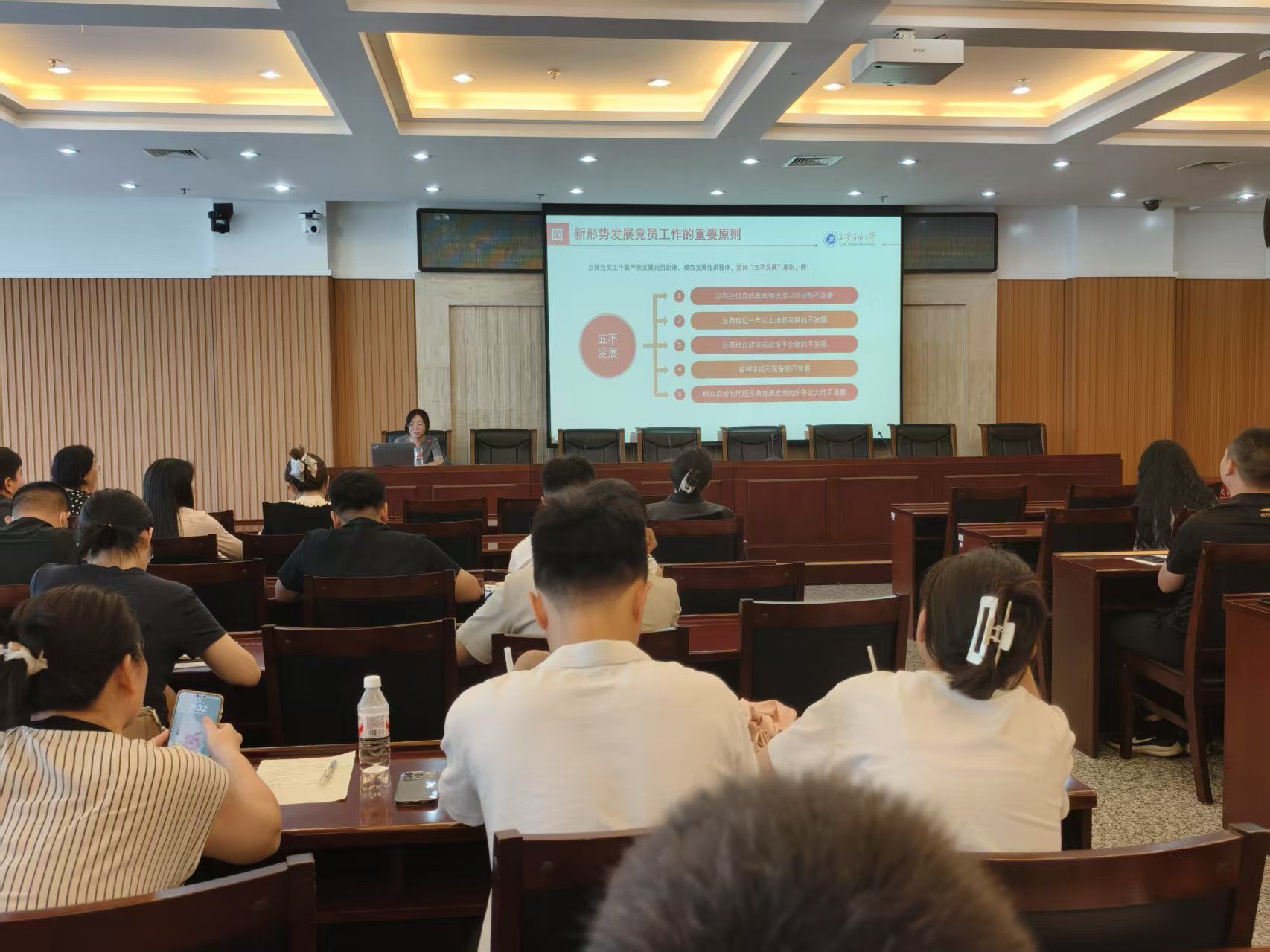 魏夢(mèng)媛從新形勢(shì)下發(fā)展黨員的工作要求出發(fā),詳細(xì)解讀了《中國(guó)共產(chǎn)黨章程》和《中國(guó)共產(chǎn)黨發(fā)展黨員工作細(xì)則》等黨內(nèi)法規(guī),強(qiáng)調(diào)了發(fā)展黨員工作的“控制總量、優(yōu)化結(jié)構(gòu)、提高質(zhì)量、發(fā)揮作用”十六字總要求。她通過(guò)PPT展示和現(xiàn)場(chǎng)講解相結(jié)合的方式,將發(fā)展黨員工作細(xì)分為五個(gè)階段、25個(gè)具體步驟,逐一進(jìn)行了剖析和說(shuō)明,就發(fā)展對(duì)象的確定和考察、預(yù)備黨員的接收、教育考察和轉(zhuǎn)正等關(guān)鍵環(huán)節(jié)進(jìn)行了重點(diǎn)講解,并通過(guò)案例分析,指出了在黨員發(fā)展過(guò)程中容易出現(xiàn)的錯(cuò)誤和問(wèn)題,提出了相應(yīng)的解決措施和建議。
