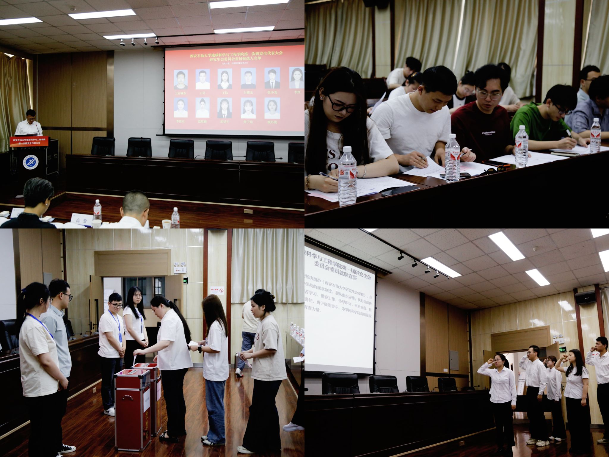 大會(huì)圓滿完成各項(xiàng)既定任務(wù),通過民主投票選舉產(chǎn)生了地球科學(xué)與工程學(xué)院第一屆研究生會(huì)委員會(huì)及主席團(tuán)成員。地球科學(xué)與工程學(xué)院第一屆研究生會(huì)委員會(huì)全體成員,面向團(tuán)旗就職宣誓。第一屆研究生會(huì)委員會(huì)代表范斯雅向大會(huì)作工作展望。最后,大會(huì)在全場(chǎng)齊唱的西安石油大學(xué)校歌《輝煌明天》中落下帷幕。會(huì)后,全體學(xué)生代表及參會(huì)嘉賓合影留念。