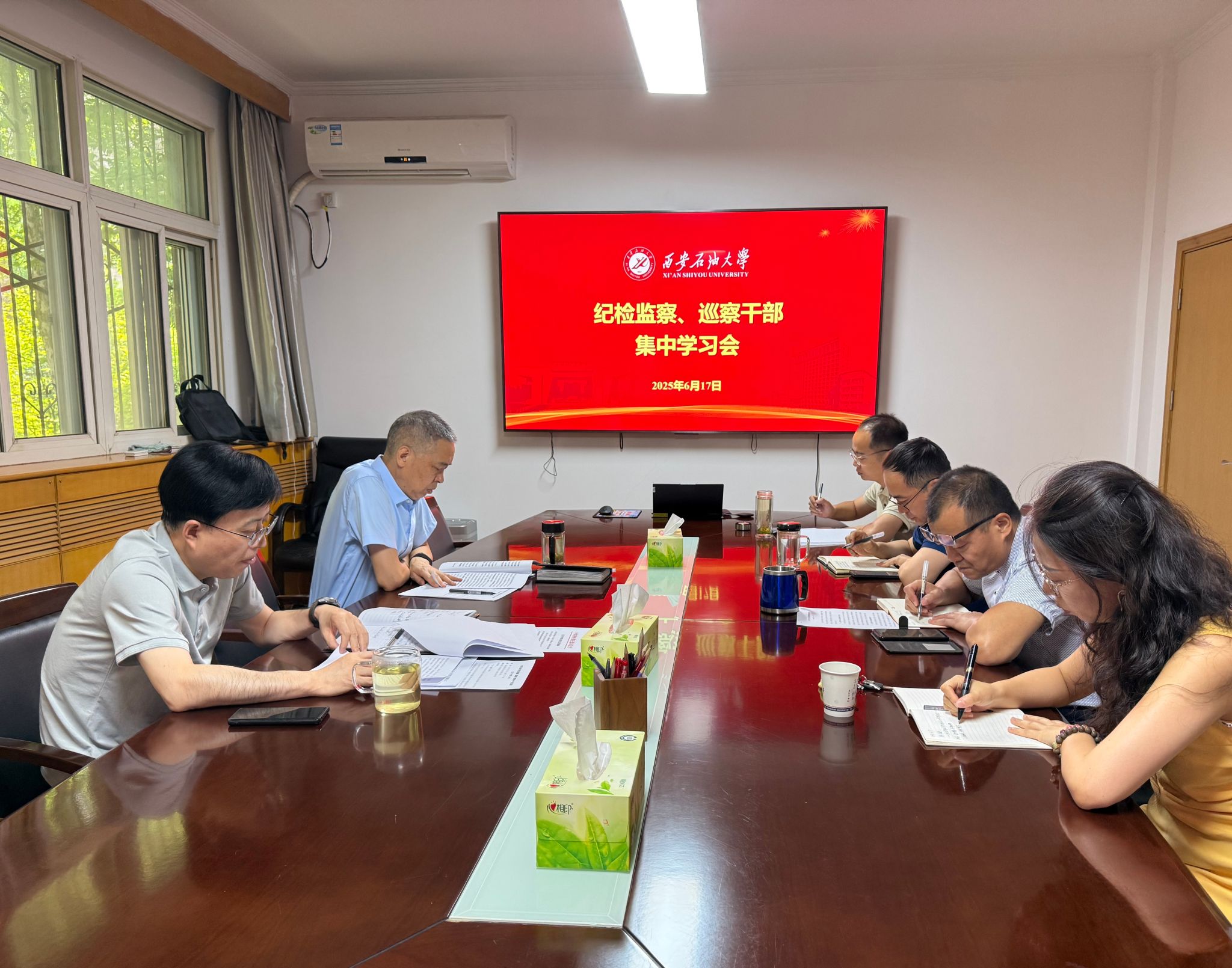 6月17日上午,紀檢巡察干部2025年第13次集中學習會在雁塔校區(qū)辦公樓二樓會議室召開,紀檢監(jiān)察機構(gòu)、黨委巡察工作辦公室全體干部參加。會議由校黨委副書記、紀委書記、監(jiān)察專員王輝強主持。