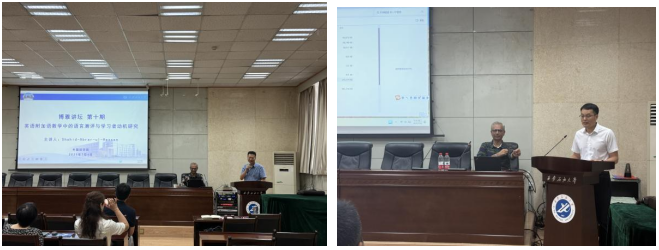 首場講座,Hassan以“英語附加語教學中的語言測評與學習者動機”為核心議題,主要從語言測評與學習者為中心的新研究方向、附加語教學中的學習者動機研究現狀、學習者為中心的學習者動機和語言測評研究等三個方面做了報告。他提出語言評估應轉向“評估即教學實踐”(Assessment as a pedagogical practice)的新范式,詳細介紹了他近年提出來的“AID三維模型”(Achievement function,instructional function,Diagnostic function),結合動態(tài)任務設計,在第二語言動機自我系統理論框架(L2 Motivation Self System)下,以真實性評估工具激活語言學習者內驅力。他還詳細說明了語言測評實踐的三個動向,即測評和支架式教學作為學習過程的運用、對語言教學作為雙向建構過程的概念化認識、語言產出以外更加重視動態(tài)真實的教學過程。隨后,深入地闡釋了AID模型的具體應用情況,并闡明了該模型的真實性、合理性、可信度及其可能產生的積極反撥作用。最后,Hassan教授還介紹了該領域在教師能動性(Teacher Agency)和政策創(chuàng)新和支持等研究方向的發(fā)展新動向。