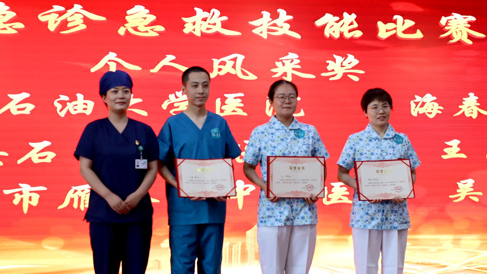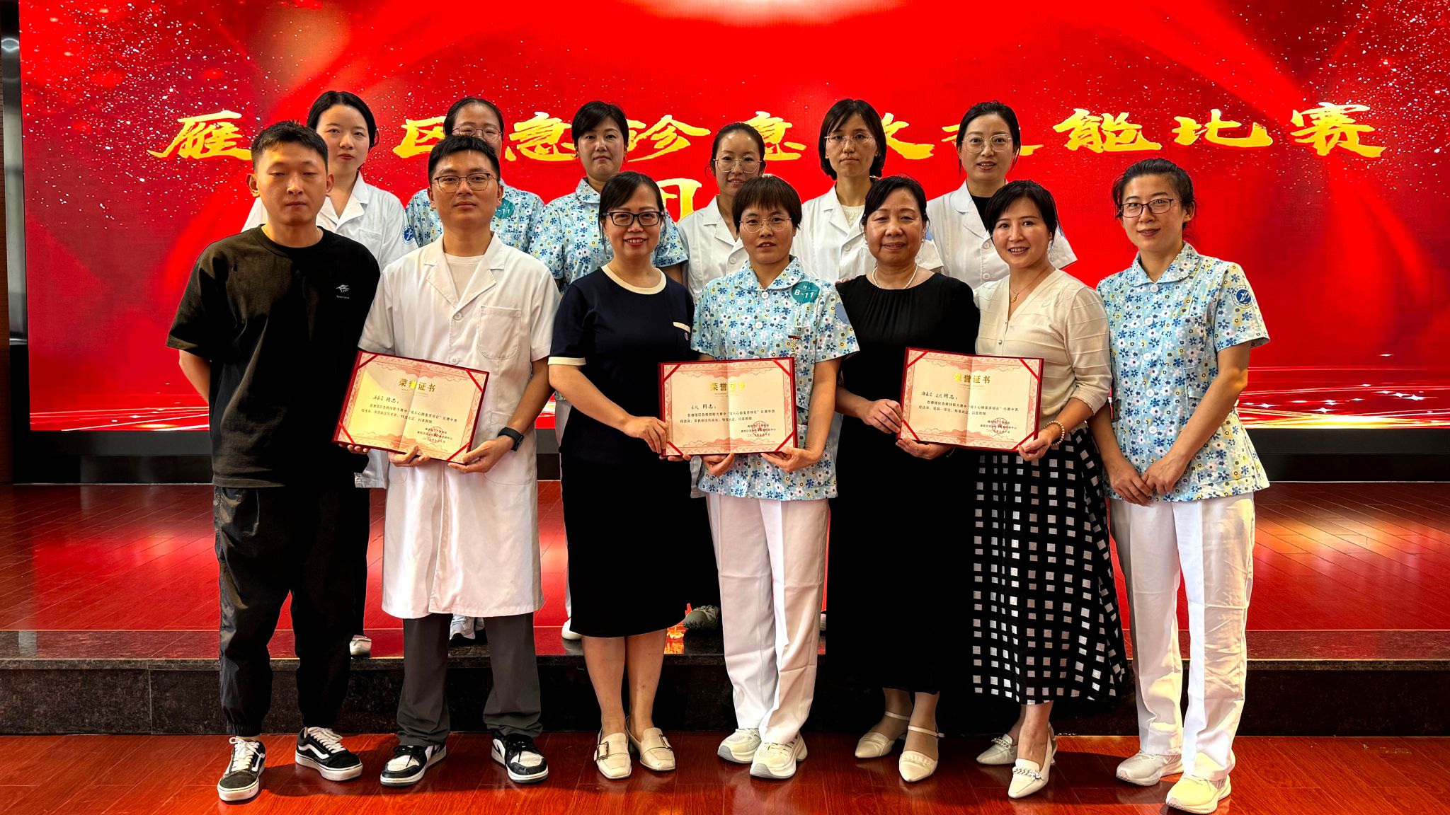 比賽期間,海春會(huì)護(hù)士長(zhǎng)作為參賽選手代表發(fā)言時(shí)提到,急救技能是醫(yī)護(hù)人員的立身之本,更是守護(hù)生命的防線,團(tuán)隊(duì)將以賽促練,讓專(zhuān)業(yè)守護(hù)延伸至校園各處。為備戰(zhàn)此次賽事,校醫(yī)院由醫(yī)療組丁麗、護(hù)理組伍曉燕主任帶領(lǐng)的4支隊(duì)伍經(jīng)過(guò)一個(gè)多月系統(tǒng)訓(xùn)練,在多機(jī)構(gòu)角逐中脫穎而出:不僅拿下雙人賽、團(tuán)隊(duì)賽一等獎(jiǎng),還獲雙人賽優(yōu)秀獎(jiǎng)、團(tuán)隊(duì)賽優(yōu)秀獎(jiǎng)及最佳風(fēng)采獎(jiǎng),展現(xiàn)了過(guò)硬技能與良好風(fēng)貌。其中,雙人組海春會(huì)、王凡在全區(qū)26組選手中摘得一等獎(jiǎng)并獲個(gè)人風(fēng)采獎(jiǎng),譚亞、解姣團(tuán)隊(duì)獲優(yōu)秀團(tuán)隊(duì)獎(jiǎng);4人組洪艷萍、劉偉、李佳晨、向艷在12支隊(duì)伍中奪得團(tuán)體一等獎(jiǎng),劉婷、姜嬋嬋、張美妮、李艷團(tuán)隊(duì)獲團(tuán)隊(duì)優(yōu)秀獎(jiǎng)。