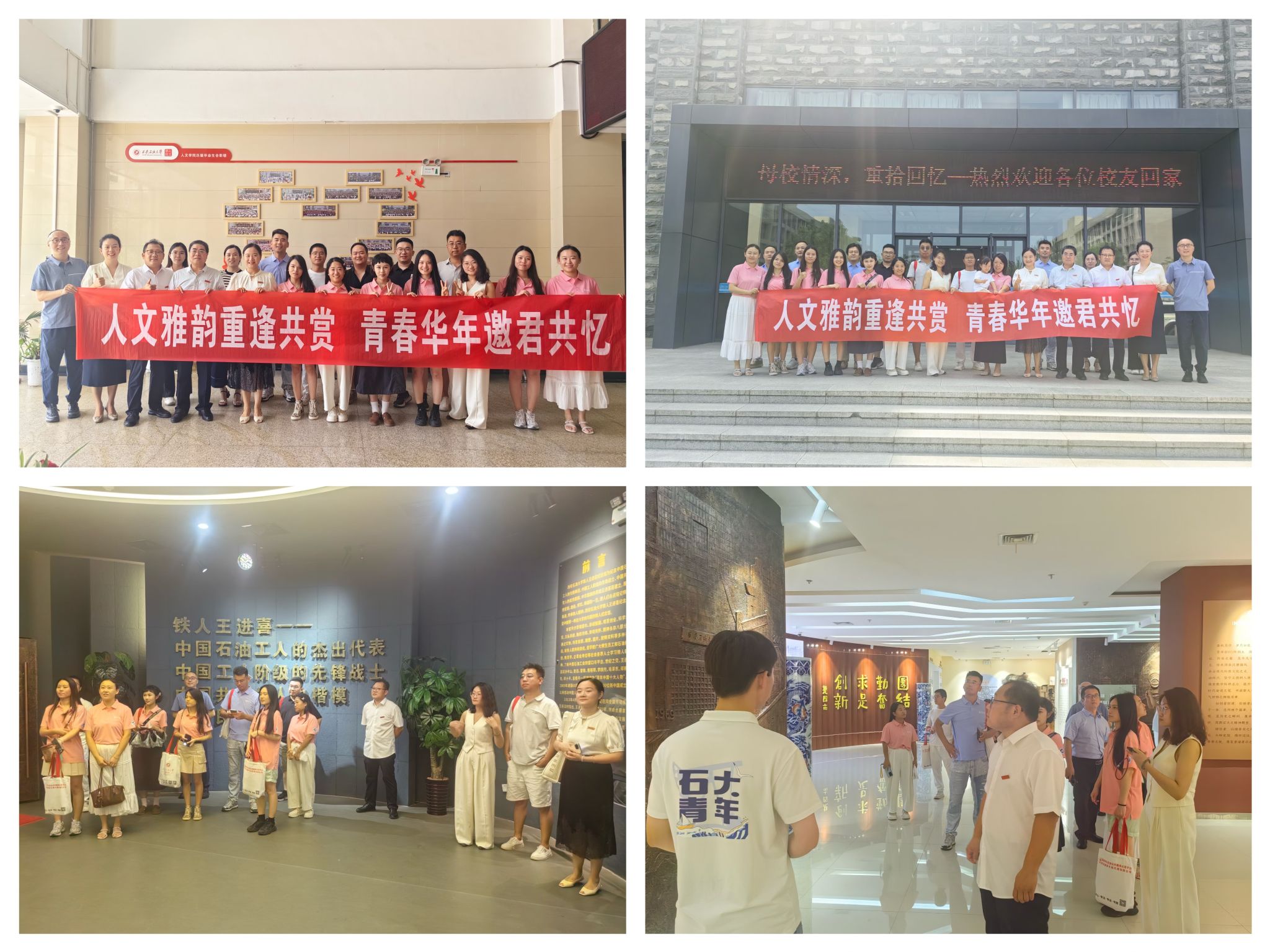 參觀鄠邑校區(qū)及兩館。下午14:00,在學院領導班子和老師的陪同下,校友們參觀了鐵人紀念館和校史館。在鐵人館內,校友們通過珍貴影像與實物老照片,重溫“鐵人精神”的深刻內涵。校史館中,一幅幅老照片、一件件歷史文物,訴說著學校七十多年來的奮斗歷程,也讓校友們回到了那段曾經在西安石油大學“刻苦奮斗、追求卓越”的歲月。參觀結束后,校友們分別在圖書館前和崇文樓一樓畢業(yè)生照片墻前合影留念。諸多校友在照片墻前駐足良久,找尋并分享自己的那段青春足跡。