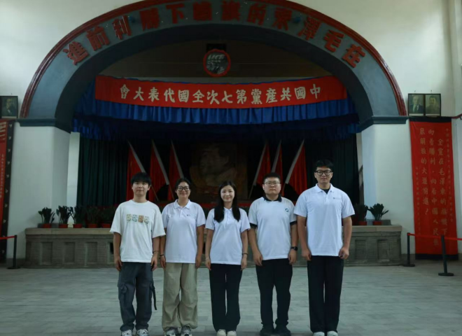 在楊家?guī)X革命根據(jù)地,實(shí)踐團(tuán)追尋思想之光,感悟理論之力。以中共七大會(huì)場(chǎng)——中央大禮堂為起始點(diǎn)開(kāi)展深度研學(xué)。身處見(jiàn)證過(guò)歷史轉(zhuǎn)折的中央大禮堂,張樂(lè)樂(lè)同學(xué)深受觸動(dòng),他在學(xué)習(xí)心得中特別寫(xiě)道:“站在七大禮堂,那句‘在毛澤東的旗幟下勝利前進(jìn)’的標(biāo)語(yǔ),讓我真切感受到科學(xué)理論武裝所迸發(fā)出的磅礴力量。不僅此行不僅是一次對(duì)思想之光的追尋,更是一次深刻的理論溯源和精神洗禮?!?/p>