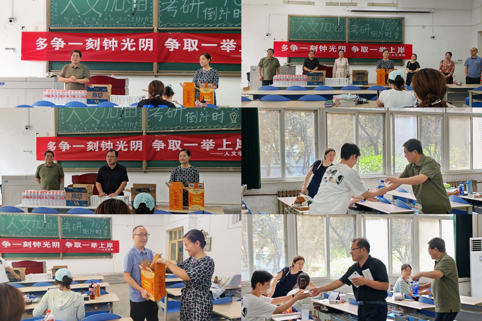 為鼓勵留校備戰(zhàn)學(xué)子,傳遞學(xué)院關(guān)心關(guān)懷,7月19日上午,人文學(xué)院黨委書記余小勇,院長方亭,黨委副書記盛丹,副院長方松林、蘭昆,系主任王敬艷、馬可、曹盼宮及輔導(dǎo)員代表前往鄠邑校區(qū)自習(xí)室,親切看望慰問暑期留校備考學(xué)子,為他們送去清涼消暑慰問品。