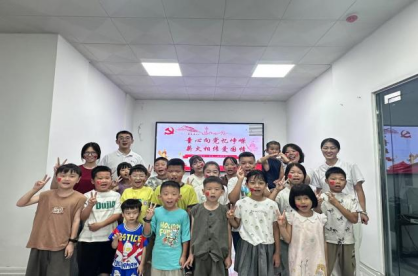 實(shí)踐團(tuán)先后走進(jìn)紫陽縣西關(guān)社區(qū)和東城門社區(qū),以“賡續(xù)紅色血脈”為主題,為孩子們帶來了一場(chǎng)生動(dòng)的紅色文化盛宴。宣講過程中,實(shí)踐團(tuán)成員以紫陽縣本地紅色資源為切入點(diǎn),結(jié)合長征歷史背景,對(duì)毛澤東《七律?長征》進(jìn)行了沉浸式解讀。通過講述紅軍過草地時(shí)“煮皮帶充饑”卻依然高唱戰(zhàn)歌的細(xì)節(jié),讓孩子們直觀感受“紅軍不怕遠(yuǎn)征難”的鋼鐵意志。通過通俗易懂的講解,使孩子們深刻領(lǐng)略到長征途中革命先輩們的英勇無畏,深切感受到兩萬五千里長征所蘊(yùn)含的寶貴精神財(cái)富,仿佛置身于那段波瀾壯闊的歷史之中。隨后,實(shí)踐團(tuán)帶領(lǐng)孩子們學(xué)唱經(jīng)典歌曲《沒有共產(chǎn)黨就沒有新中國》。激昂的歌聲在社區(qū)中回蕩,孩子們用稚嫩的嗓音唱出了對(duì)中國共產(chǎn)黨的崇敬與熱愛,領(lǐng)悟到中國共產(chǎn)黨帶領(lǐng)人民建立新中國的偉大功績?;顒?dòng)還設(shè)置了互動(dòng)環(huán)節(jié),圍繞長征歷史故事、詩詞含義、歌曲內(nèi)涵等內(nèi)容進(jìn)行提問,孩子們積極踴躍回答,現(xiàn)場(chǎng)氣氛熱烈融洽。通過互動(dòng),孩子們進(jìn)一步加深了對(duì)紅色文化的理解,愛國熱情和民族自豪感也得到了極大激發(fā)。
