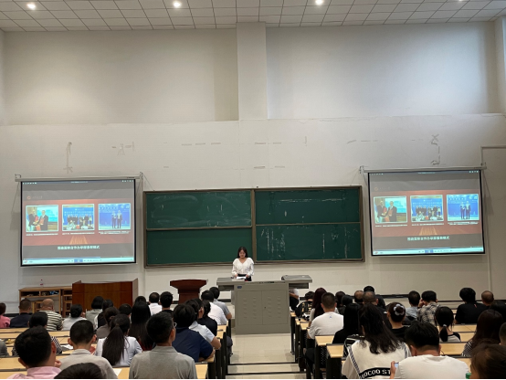 隨后,劉冰副書記介紹了學(xué)生日常管理與思政育人工作。章婭菲副院長從教學(xué)管理角度,對(duì)新生在校學(xué)習(xí)的關(guān)鍵事項(xiàng)進(jìn)行系統(tǒng)說明。2025 級(jí)本科生輔導(dǎo)員連光輝在發(fā)言中,進(jìn)一步明確了自身工作定位與職責(zé)。