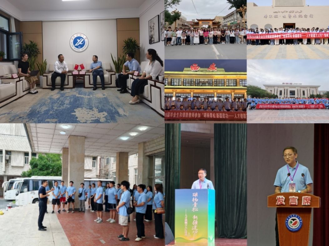 8月4日至14日,我校受邀參加新疆自治區(qū)“胡楊青松 新疆建功——人才建疆萬人行”第二期活動。就業(yè)創(chuàng)業(yè)指導(dǎo)中心、離退休工作處及各院(系)組織40余名師生走進(jìn)和田地區(qū)、烏魯木齊市的重點(diǎn)產(chǎn)業(yè)園區(qū)、企業(yè)、學(xué)校、博物館、社區(qū),通過實(shí)地參觀、座談交流等,深入開展就業(yè)研學(xué),精準(zhǔn)對接人才需求,拓寬就業(yè)渠道。活動前期,副校長種宇宏與新疆人才創(chuàng)新科技有限公司副總經(jīng)理王彥斐一行在雁塔校區(qū)行政樓會客廳座談交流。雙方就進(jìn)一步加強(qiáng)校地交流,深化產(chǎn)學(xué)研合作達(dá)成共識。就業(yè)創(chuàng)業(yè)指導(dǎo)中心主任王亮為參與師生舉行出征儀式并發(fā)放“愛心禮包”。就業(yè)創(chuàng)業(yè)指導(dǎo)中心副主任楊生強(qiáng)代表此行5所學(xué)校在和田地委黨校舉行的“胡楊青松 新疆建功——人才建疆萬人行”活動啟動儀式上發(fā)言。