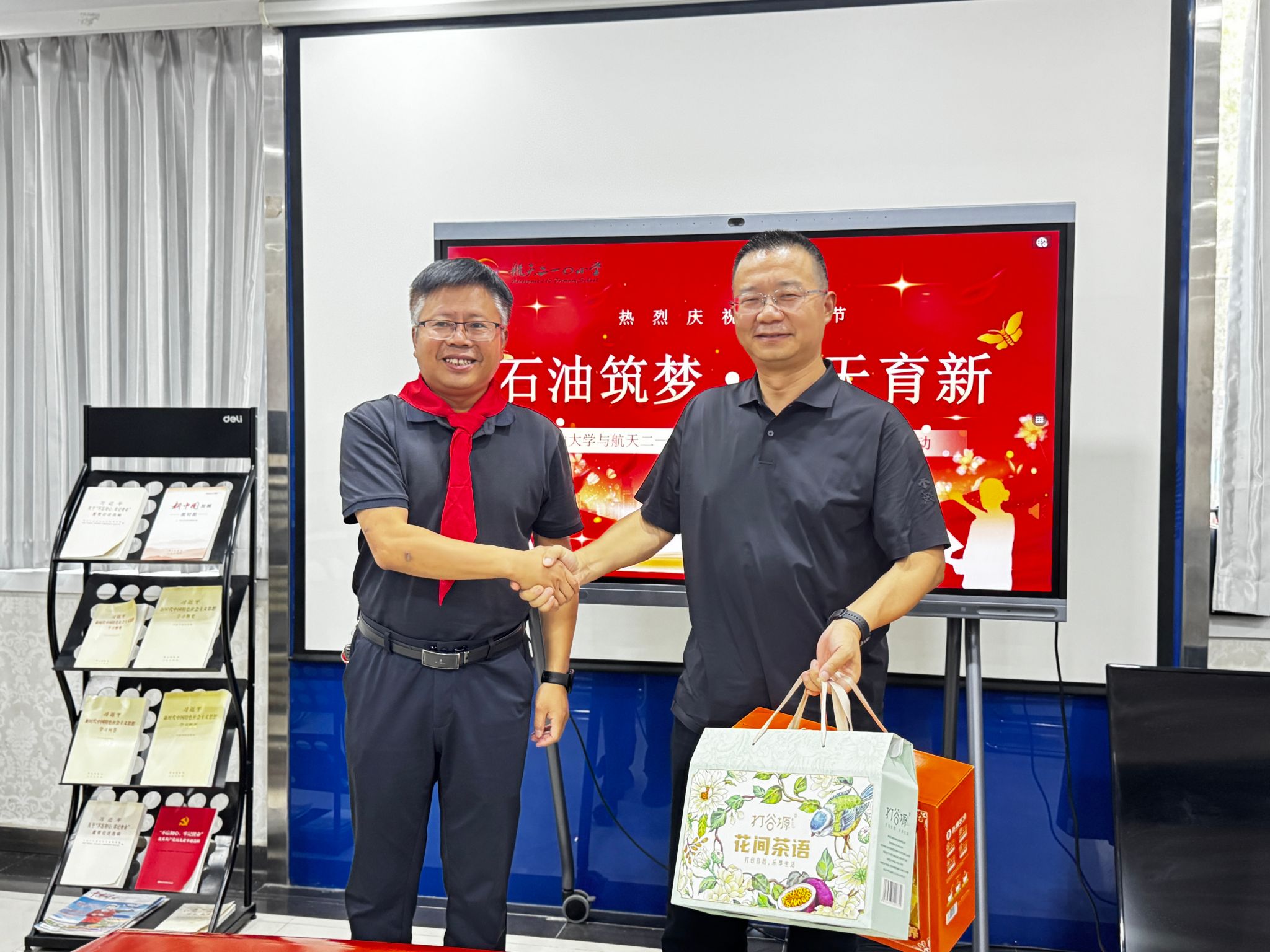 98日下午,副校長(zhǎng)張驍勇帶隊(duì)前往航天210小學(xué)參加“石油筑夢(mèng) 航天育新”教師節(jié)慶祝活動(dòng),校工會(huì)陪同走訪。航天210小學(xué)校長(zhǎng)李寧,副校長(zhǎng)劉雅鋒、段娣娜、翟毅博及部分教師代表參加了本次活動(dòng)。