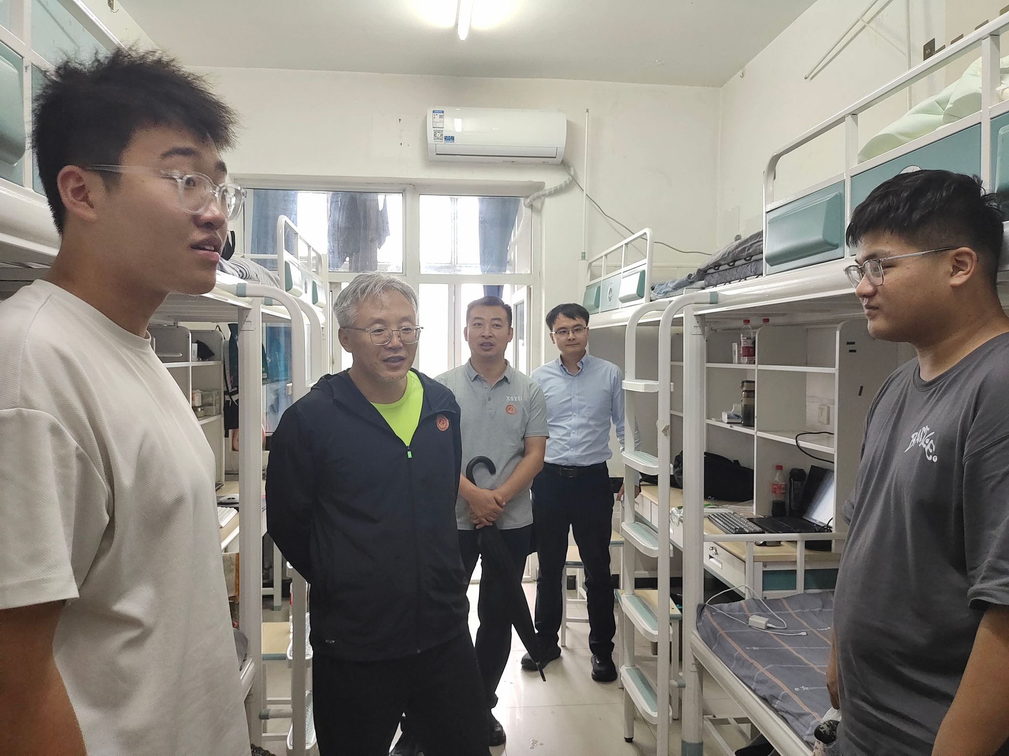 94日至5日迎新日,學(xué)院上下齊心協(xié)力,共同投入迎新一線。學(xué)院領(lǐng)導(dǎo)班子、學(xué)生工作辦公室全體老師、學(xué)生干部及志愿者全員到崗,各司其職。從西安各大交通樞紐的跟車接站,到校園內(nèi)的報到指引、身份核驗,再到協(xié)助搬運行李,全過程銜接流暢、秩序井然。學(xué)院準(zhǔn)備的礦泉水、行李小推車、創(chuàng)意合照卡牌、應(yīng)急雨具和藥品等物資,于細(xì)微處體現(xiàn)了學(xué)院對新生的誠摯歡迎與人文關(guān)懷,讓初入校園的新生和家長倍感溫暖。迎新點輪班工作堅持直到最后一人完成報到,對未抵達(dá)新生點對點聯(lián)系,將服務(wù)保障與數(shù)據(jù)統(tǒng)計做細(xì)做實。95日下午,學(xué)院黨委領(lǐng)導(dǎo)一行走訪了新生宿舍,為同學(xué)們送去關(guān)懷與問候。走訪中,領(lǐng)導(dǎo)們悉心檢查宿舍設(shè)施,與新生暢談入學(xué)報到的體驗,并希望大家盡快適應(yīng)新生活,順利開啟大學(xué)新篇章。他們特別囑咐,要建立和諧的宿舍關(guān)系,若有任何急難事,務(wù)必第一時間聯(lián)系輔導(dǎo)員老師。學(xué)院迎新當(dāng)日的服務(wù)接受了校領(lǐng)導(dǎo)的檢驗,受到了學(xué)生和家長廣泛一致的好評。