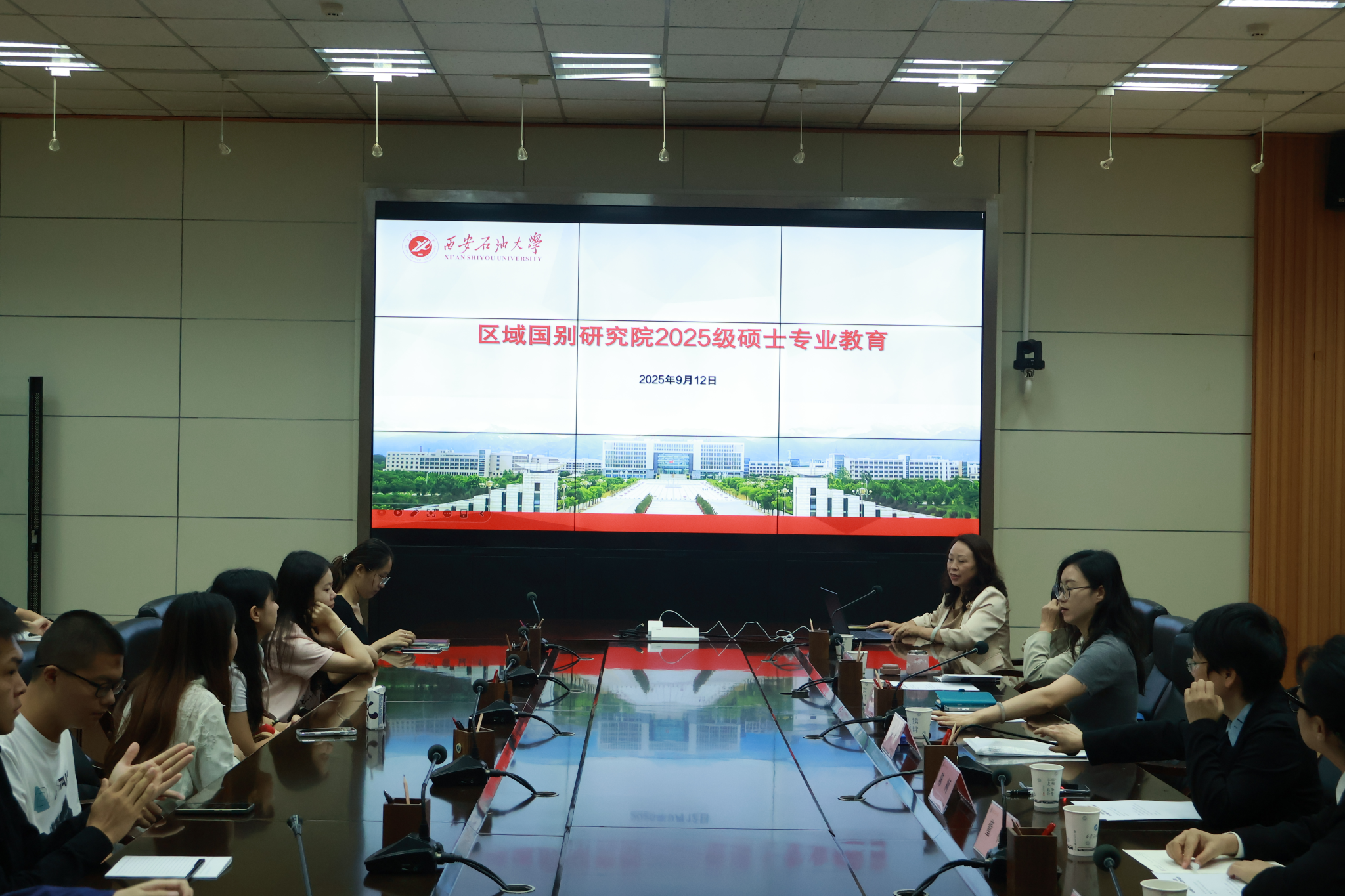 9月12日上午,區(qū)域國(guó)別研究院在雁塔校區(qū)會(huì)議中心第二會(huì)議室舉辦2025級(jí)區(qū)域國(guó)別學(xué)碩士研究生開(kāi)學(xué)典禮暨入學(xué)專業(yè)教育。研究院執(zhí)行院長(zhǎng)劉輝、區(qū)域國(guó)別學(xué)碩士研究生導(dǎo)師以及2025級(jí)研究生新生參加會(huì)議。會(huì)議由研究院陶李主持。