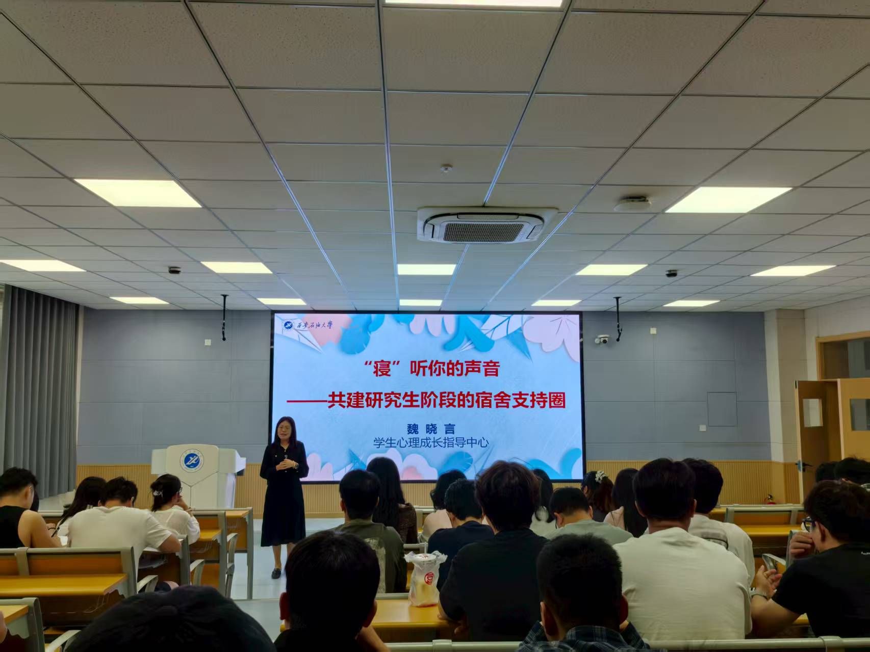 2025年9月12日上午9:30,“寢”聽你的聲音——共建研究生階段的宿舍支持圈”心理講座在博覽樓A110順利展開,學生心理成長指導中心魏曉言老師主講,理學院研2025級全體同學參加。