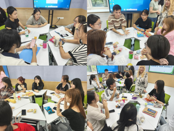 主題討論環(huán)節(jié),學生們根據(jù)興趣自主分組,圍繞“興趣愛好的培養(yǎng)與發(fā)展”、“中外興趣文化差異”等話題展開深入交流。交流過程中,學生們積極嘗試俄語對話,兩位外教古力娜拉、斯威特蘭納老師全程巡回指導,針對學生的語言表達問題及時糾錯、耐心講解,有效幫助學生提升語言運用的準確性與流暢度。各組討論結束后,紛紛選派代表上臺分享交流成果,學生們的精彩發(fā)言贏得現(xiàn)場陣陣掌聲,充分展現(xiàn)了我院學子良好的外語素養(yǎng)與精神風貌。最后全體參與人員合影留念,為本次活動畫上圓滿句號。