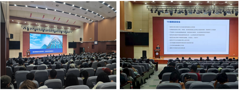 開展“警校共治”宣傳活動,學(xué)校積極聯(lián)動西安市公安局鄠邑分局,9月18日,為鄠邑校區(qū)本科新生舉辦“公安鄠邑分局進校新生安全教育報告會”,從網(wǎng)絡(luò)安全、政治保衛(wèi)、禁毒緝毒、反電信詐騙四個領(lǐng)域,運用豐富詳實的案例,以生動形象的語言和深入淺出的方式,為師生帶來了一堂意義深遠、觸動心靈的法治教育課,引導(dǎo)新生樹立正確的網(wǎng)絡(luò)安全觀。