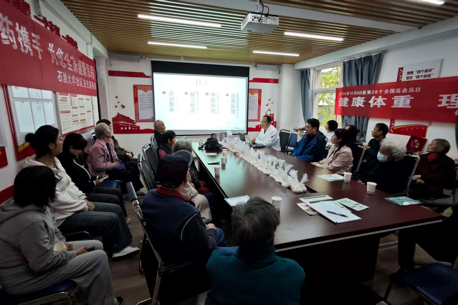 整場講座兼具現(xiàn)代醫(yī)學的嚴謹指導與傳統(tǒng)中醫(yī)的養(yǎng)生智慧,內容干貨滿滿、實用性極強,贏得在場聽眾的一致認可?;顒蝇F(xiàn)場氛圍熱烈,老同志們專注聆聽、不時點頭,遇到重點內容還拿出手機拍照記錄,互動環(huán)節(jié)更是積極提問,與醫(yī)生深入交流健康困惑。講座結束后,校醫(yī)院還貼心準備了定制小禮品,讓溫暖關懷直抵人心,進一步提升了老同志們的參與感與幸福感。隨后,石油大學社區(qū)衛(wèi)生服務站負責人詹華斌向大家介紹了站點的公共服務項目,重點提及近期新增的理療項目與檢驗檢查服務,并特別說明可為行動不便的老人提供“定制化上門醫(yī)療服務”,貼心舉措獲老同志們紛紛點贊。