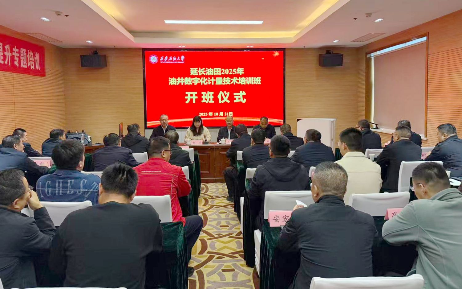 10月21日下午,由延長油田股份有限公司(以下簡稱“油田公司”)主辦、我校承辦的“2025年油井數(shù)字化計量技術(shù)培訓班”在延安順利開班。油田公司各采油廠、各分公司作業(yè)區(qū)的生產(chǎn)業(yè)務(wù)骨干和技術(shù)計量人員參加培訓。