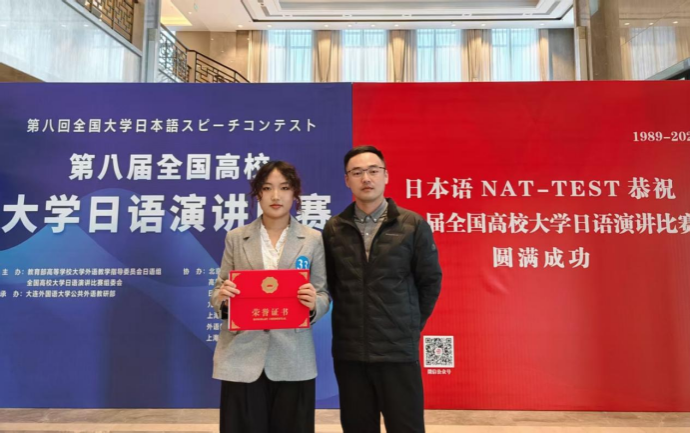 10月18日,第八屆全國高校大學日語演講比賽在大連落下帷幕。經過初賽、復賽和決賽的層層選拔及考驗,外國語學院教師陳旭指導的工設2401班唐鈺錦同學斬獲全國總決賽一等獎,取得我校學子在該項國家級競賽中的歷史性突破。