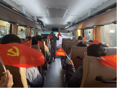 清晨,全體參與人員統(tǒng)一乘車前往渭南華州區(qū)。途中,車上開展了簡要的行前學習,大家共同回顧了渭華起義的歷史背景與精神內(nèi)涵。在講解員的帶動下,車廂內(nèi)響起嘹亮的紅歌聲,《歌唱祖國》《我和我的祖國》《我為祖國獻石油》等經(jīng)典旋律依次唱響,激昂的歌聲一路相伴,為此次紅色學習之旅奠定了莊重而熱烈的情感基調(diào)。
