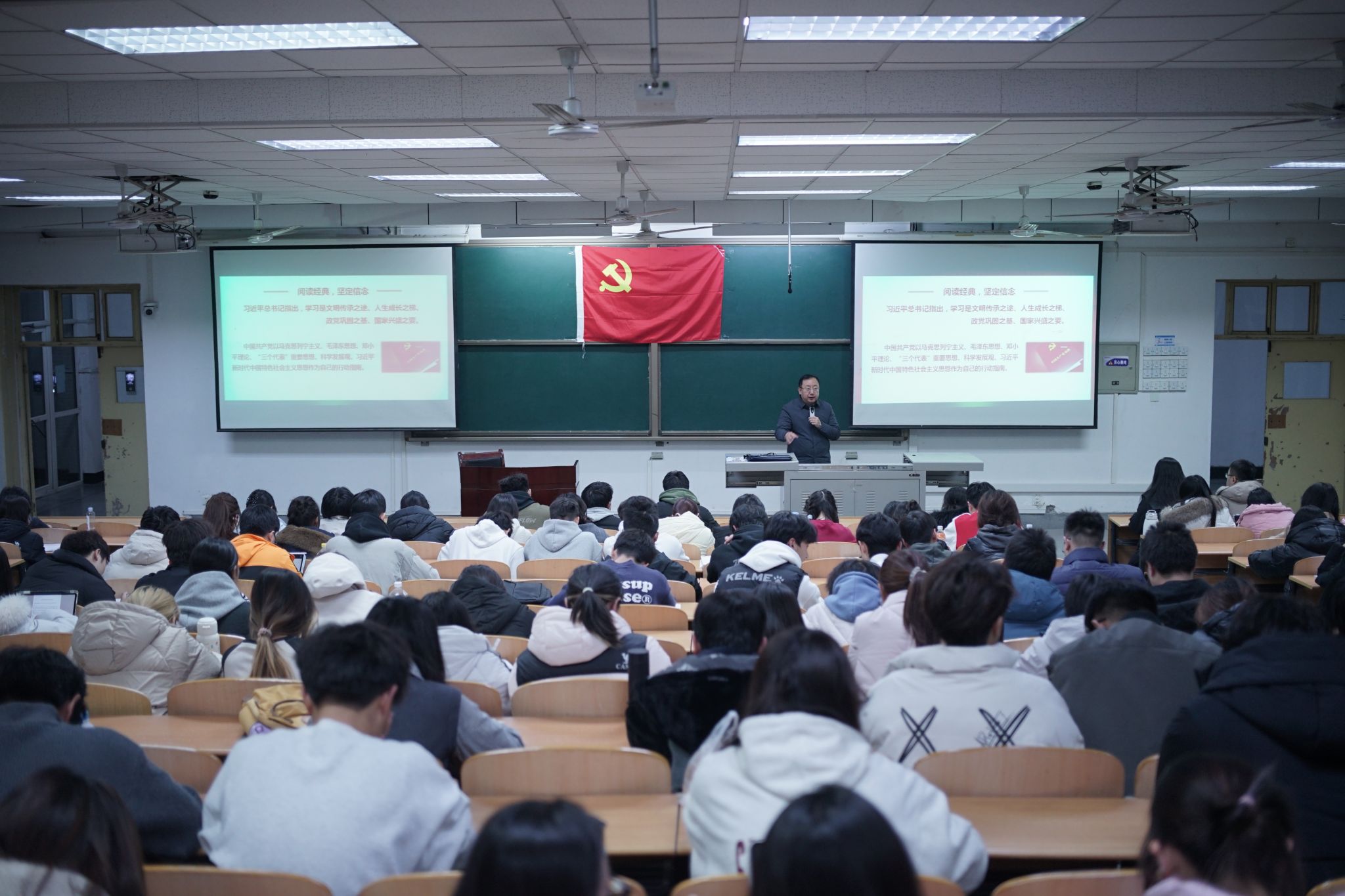 種宇宏從《共產(chǎn)黨宣言》誕生的歷史背景談起,對《共產(chǎn)黨宣言》展開了深入細致地解讀。他概括講解了《共產(chǎn)黨宣言》的主要內(nèi)容和基本原理,全面系統(tǒng)地闡述了馬克思主義對階級斗爭、無產(chǎn)階級革命和未來社會形態(tài)的看法。在講述《共產(chǎn)黨宣言》對中國社會和中國先進知識分子的影響時,他以國家領(lǐng)導人和名人閱讀學習《共產(chǎn)黨宣言》感悟后形成的新思想為時間線,講述了馬克思主義中國化時代化的歷史進程。他闡述了重溫《共產(chǎn)黨宣言》的當代價值和歷史意義,引導同學們堅定理想信念,牢記歷史使命,勿忘人民囑托,在新時代傳承和踐行《共產(chǎn)黨宣言》的精神內(nèi)涵,真正做到在政治上、思想上、行動上與黨中央保持高度一致,用青春書寫新時代堅持和發(fā)展中國特色社會主義新篇章。