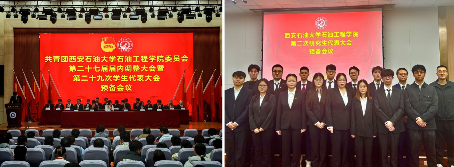 12月10日,西安石油大學石油工程學院第二十九次學生代表大會暨第二次研究生代表大會在鄠邑校區(qū)弘石報告廳勝利召開,學院黨委書記司馬文龍、校團委副書記王軍策,學院黨委副書記艾二鑫出席大會。校學生會、校研究生會、兄弟學院學生會代表受邀參會,學院學生工作辦公室全體老師、各年級學生代表參加會議。