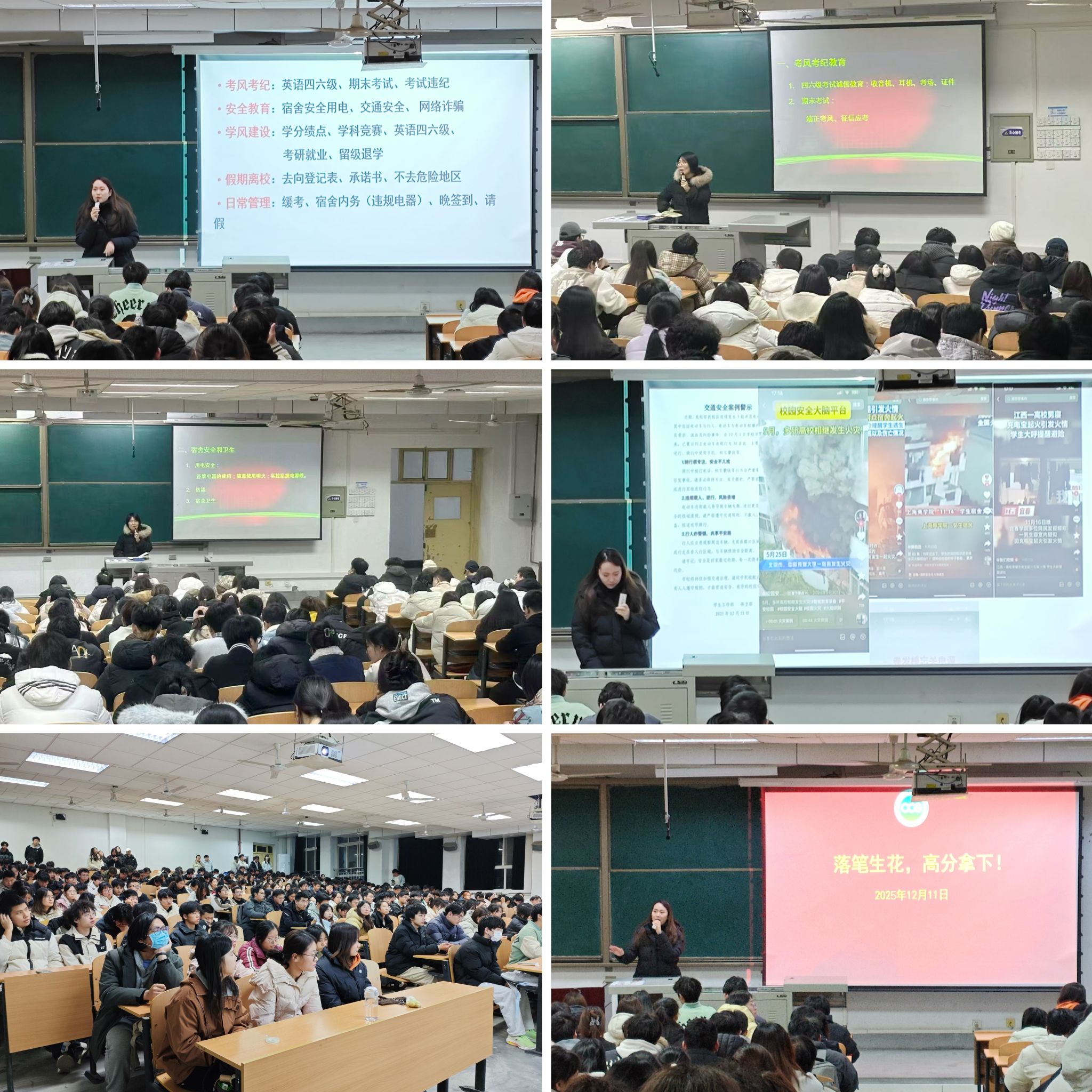 為進(jìn)一步筑牢期末考風(fēng)考紀(jì)防線,護(hù)航學(xué)生平安健康過(guò)冬,12月10日至11日,化學(xué)化工學(xué)院分年級(jí)召開(kāi)誠(chéng)信考試暨期末安全主題教育大會(huì),各年級(jí)輔導(dǎo)員擔(dān)任主講,全體學(xué)生參會(huì)。