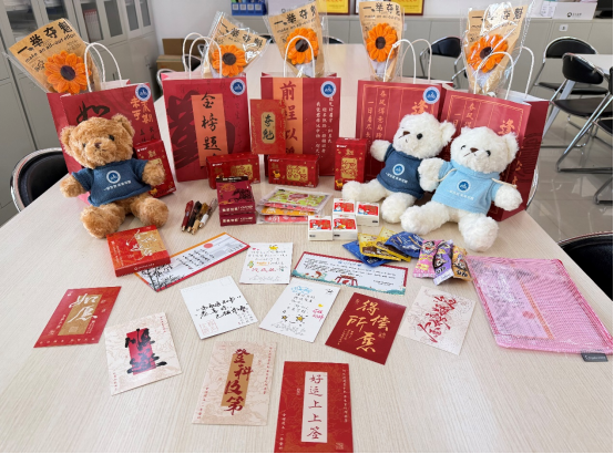 會后,學(xué)院領(lǐng)導(dǎo)老師們?yōu)橥瑢W(xué)們發(fā)放了精心準(zhǔn)備的“逢考必過”考研慰問大禮包。禮包內(nèi)含印有學(xué)院院徽的文具套裝、暖寶寶、旺仔棒棒糖、紙巾、向日葵以及貼有“馬到橙功”祝福語的橙子等暖心物品,寓意心想事“橙”、一路長“旺”、“紙”定高分、一舉奪“葵”,承載著全院師生對考研學(xué)子的殷切期望與美好祝愿。收到禮包的同學(xué)們紛紛表示,這份心意讓他們深切感受到來自學(xué)院的溫暖與支持,也更加堅定了沖刺的信心。