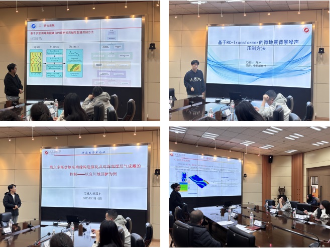 報(bào)告環(huán)節(jié),7名同學(xué)依次作學(xué)術(shù)報(bào)告,圍繞地球科學(xué)與工程領(lǐng)域的前沿課題、研究方法及實(shí)踐成果展開深入分享,同學(xué)們通過詳實(shí)的數(shù)據(jù)、嚴(yán)謹(jǐn)?shù)恼撟C和生動的PPT演示,清晰呈現(xiàn)了各自的研究思路與學(xué)術(shù)成果,展現(xiàn)出了扎實(shí)的專業(yè)功底和良好的學(xué)術(shù)素養(yǎng)