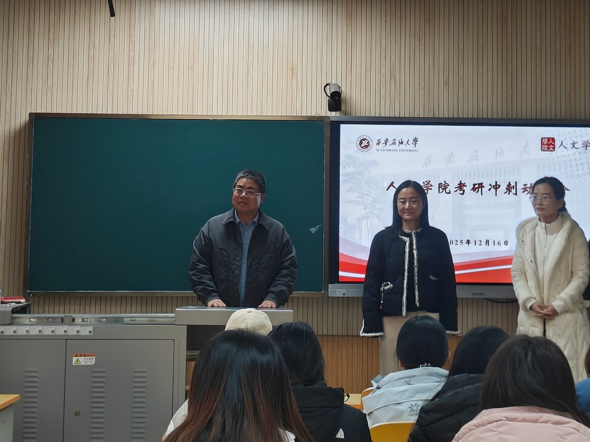 在2026屆研究生入學(xué)考試沖刺關(guān)鍵時期,為激勵考研學(xué)子堅定信念、全力備戰(zhàn),12月16日上午,人文學(xué)院在鄠邑校區(qū)崇文樓233教室舉辦考研沖刺動員暨慰問活動。學(xué)院黨委書記余小勇、院長方亭、黨委副書記郭媛、副院長方松林、蘭昆出席活動,向考研學(xué)子送上誠摯關(guān)懷與殷切寄語。