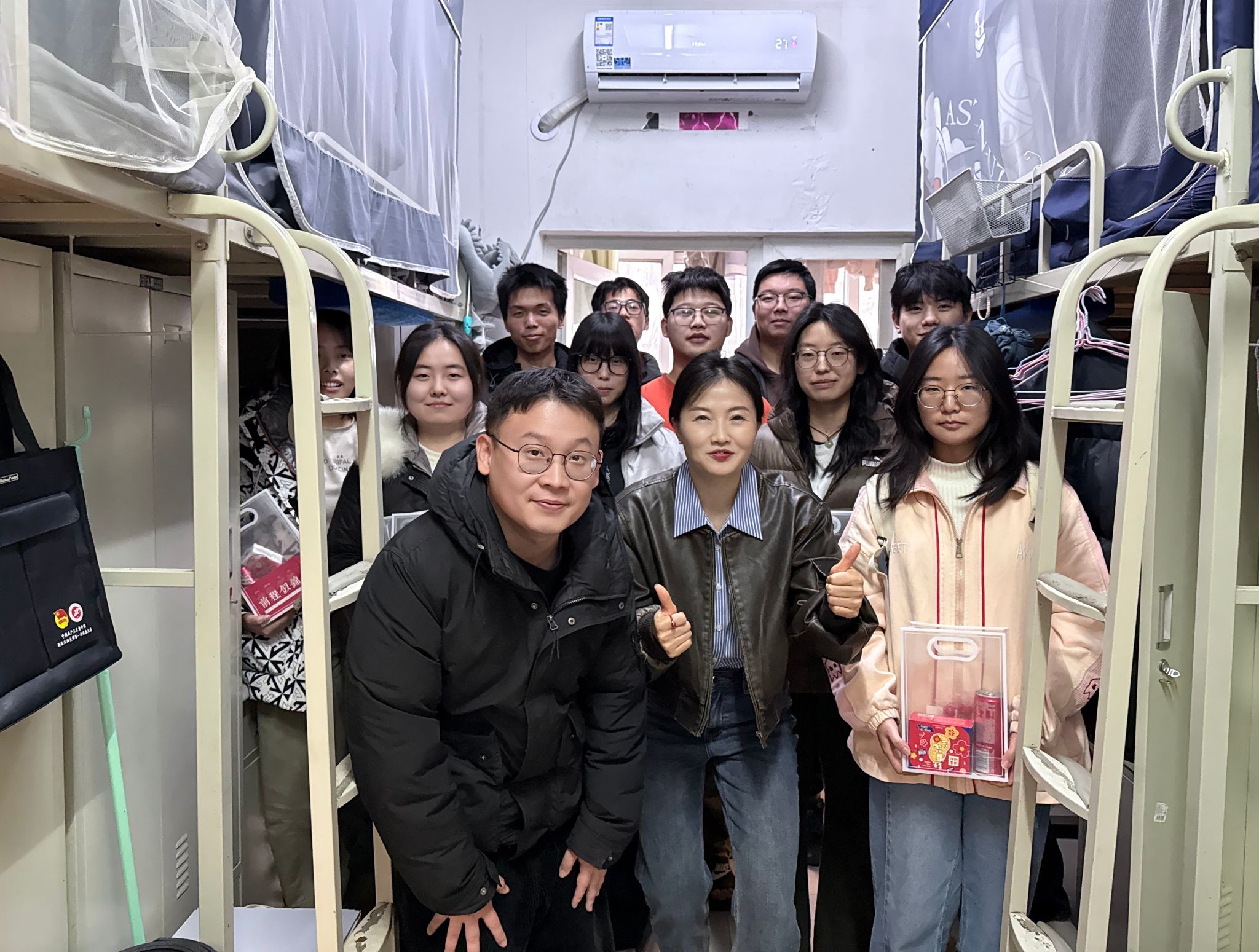 為幫助學(xué)生緩解備考壓力、鼓舞決勝信心,12月18日下午,學(xué)院黨委副書記喬曉與2022級輔導(dǎo)員秦嶺走訪慰問正在緊張備考的考研學(xué)子,為他們送去“獨家定制”的的暖心鼓勵與慰問。