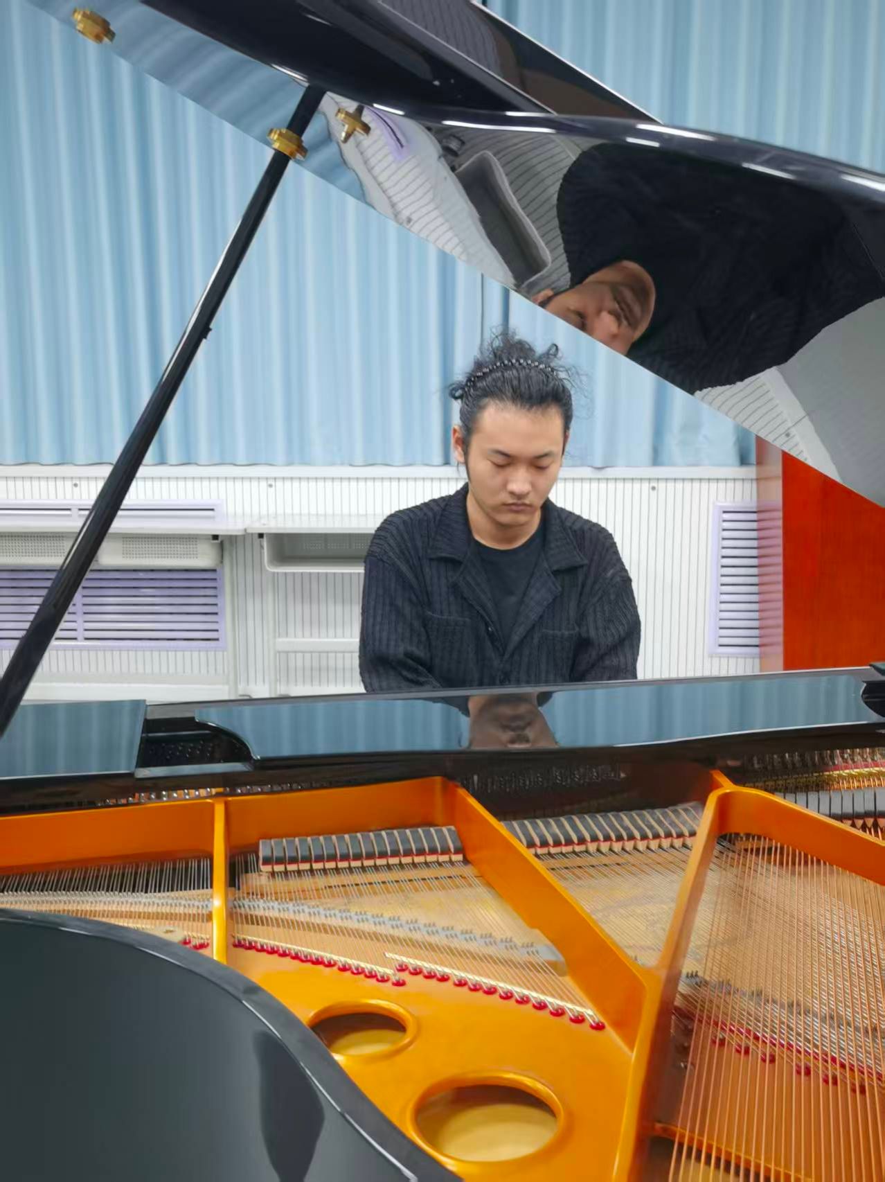 邵一然演奏的張朝作品《努瑪阿美》,以“太陽(yáng)之原”的哈尼族文化意象為核心,通過(guò)倍復(fù)二部結(jié)構(gòu)的精妙演繹,展現(xiàn)了作品的思鄉(xiāng)情懷與民族特色。慢板開(kāi)篇的輕柔織體勾勒出家鄉(xiāng)旖旎風(fēng)光,快板段落的復(fù)調(diào)手法與多變和聲迸發(fā)熱烈民族律動(dòng),尾聲的寧?kù)o回歸則余韻悠長(zhǎng)。演奏者精準(zhǔn)把握了西方作曲技法與民族音樂(lè)語(yǔ)匯的融合精髓,讓“鋼琴說(shuō)中國(guó)話”的創(chuàng)作巧思得以充分彰顯。作品中對(duì)理想家園的向往、對(duì)故土的眷戀,既是個(gè)人情感的表達(dá),更是中華民族“家國(guó)同構(gòu)”文化傳統(tǒng)的生動(dòng)體現(xiàn),讓觀眾在音樂(lè)中體會(huì)到個(gè)人與民族、家鄉(xiāng)與國(guó)家的深厚聯(lián)結(jié),培育了家國(guó)情懷與民族文化認(rèn)同。這種將民族文化、個(gè)人情感與國(guó)家命運(yùn)相連的藝術(shù)表達(dá),實(shí)現(xiàn)了音樂(lè)藝術(shù)、美育熏陶與思政教育的深度共振,讓青年學(xué)子在感受民族音樂(lè)魅力的同時(shí),堅(jiān)定了扎根民族土壤、勇?lián)鷷r(shí)代責(zé)任的信念。
