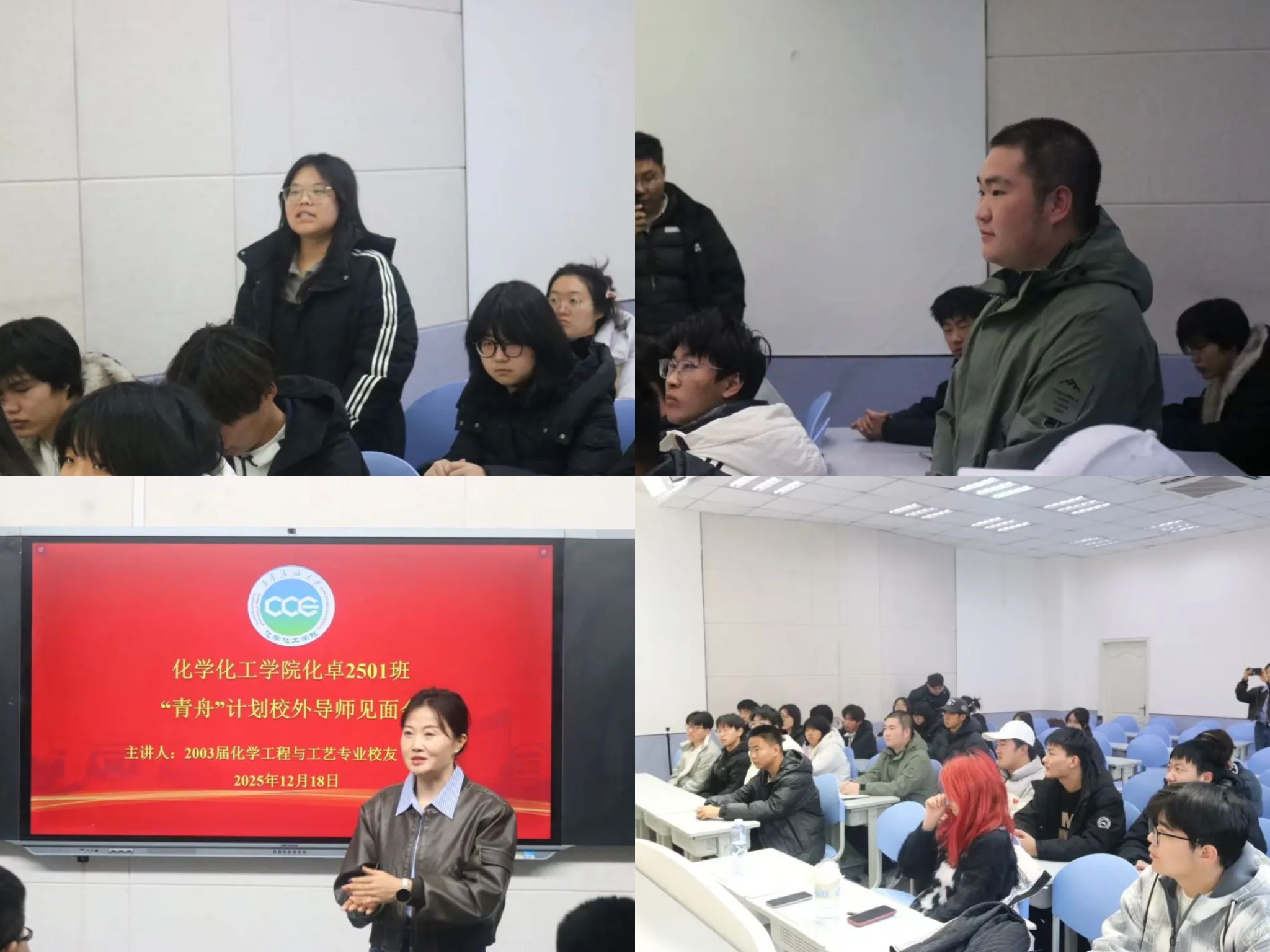 為深耕產(chǎn)教融合育人生態(tài),構(gòu)建校﹣企﹣校友協(xié)同賦能體系,精準錨定學(xué)子學(xué)業(yè)深耕與職業(yè)遠航的核心需求,化學(xué)化工學(xué)院日前線上舉行”青舟”計劃校友導(dǎo)師聘任儀式,12月18日,萬里和蔡乾鋒兩位校友專程趕赴新校區(qū)和學(xué)生進行線下分享交流。學(xué)院黨委書記孫會珠、副院長李善建、2023級輔導(dǎo)員白婷、2025級輔導(dǎo)員陳雨露及學(xué)生代表一同參加,活動由學(xué)院黨委副書記喬曉主持。