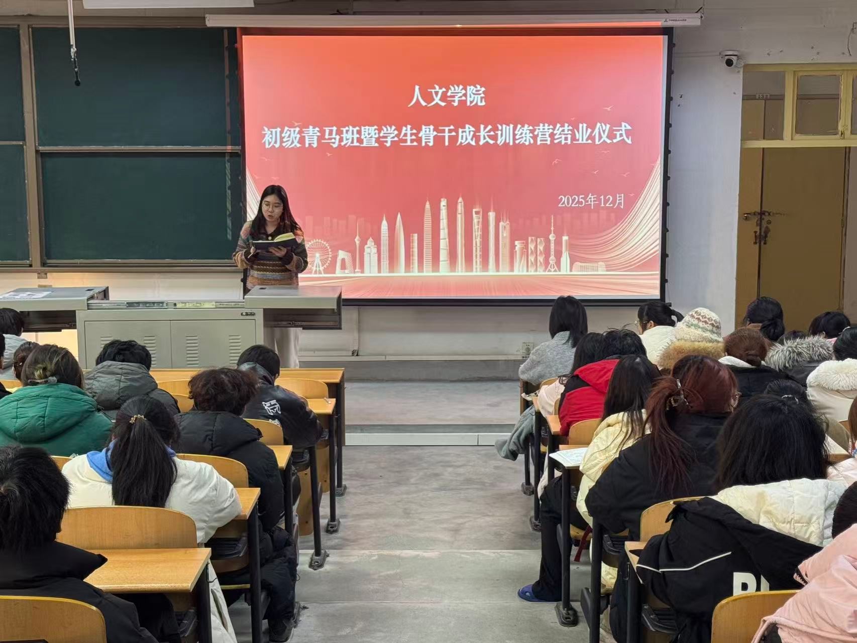 12月17日,人文學(xué)院在鄠邑校區(qū)A139教室舉行初級青馬班暨學(xué)生骨干成長訓(xùn)練營結(jié)業(yè)儀式與2025級年級大會。2025級全體學(xué)生共同參與本次活動。