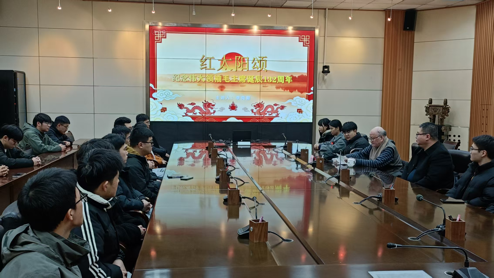 12月26日下午,在雁塔校區(qū)會(huì)議中心第二會(huì)議室,離退休教職工李克勤書記以“紅太陽頌”為主題,在紀(jì)念偉大領(lǐng)袖毛澤東主席誕辰132周年之際,為機(jī)械工程學(xué)院研究生代表奉獻(xiàn)了一場兼具思想性、指導(dǎo)性與趣味性的分享會(huì),由離退休工作處副處長趙海濤主持。