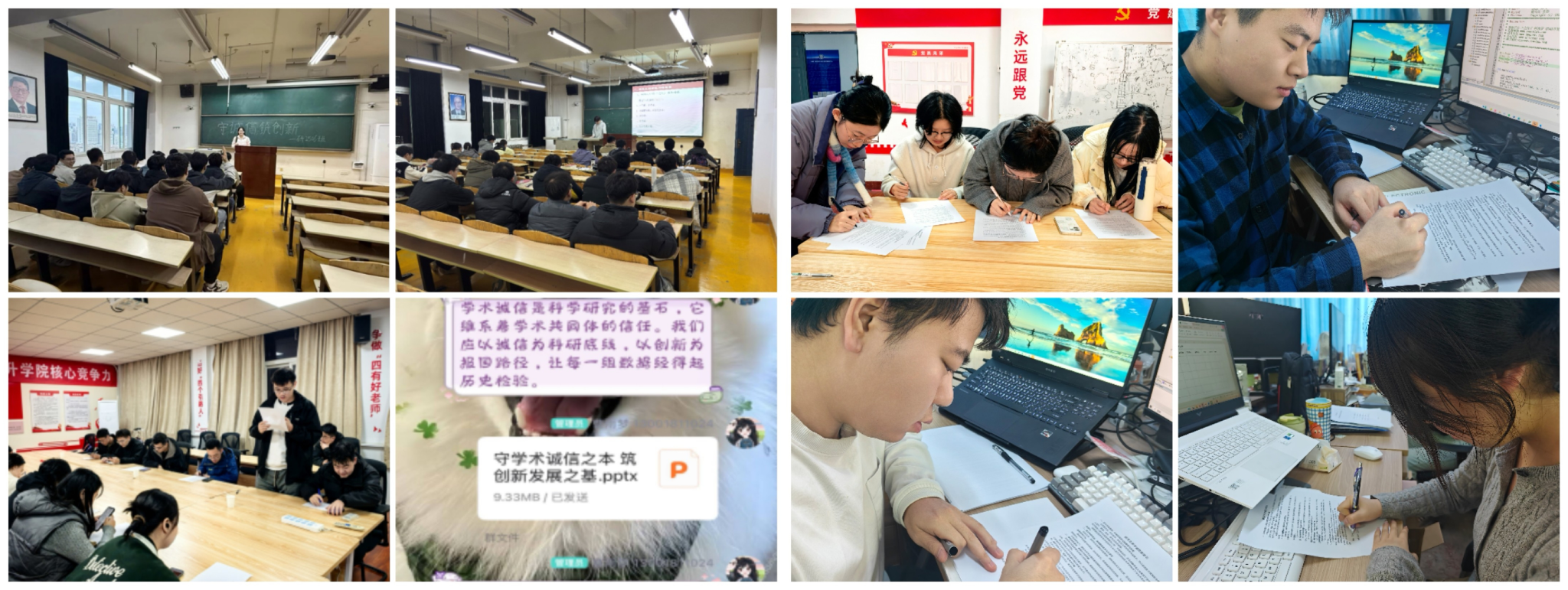 12月1日—12日期間,組織各班召開學術誠信主題班團會,學習學術不端典型案例,簽訂《學術誠信承諾書》,強化研究生在數(shù)據(jù)采集、論文發(fā)表、專利申報等環(huán)節(jié)的誠信意識,筑牢科研道德防線。