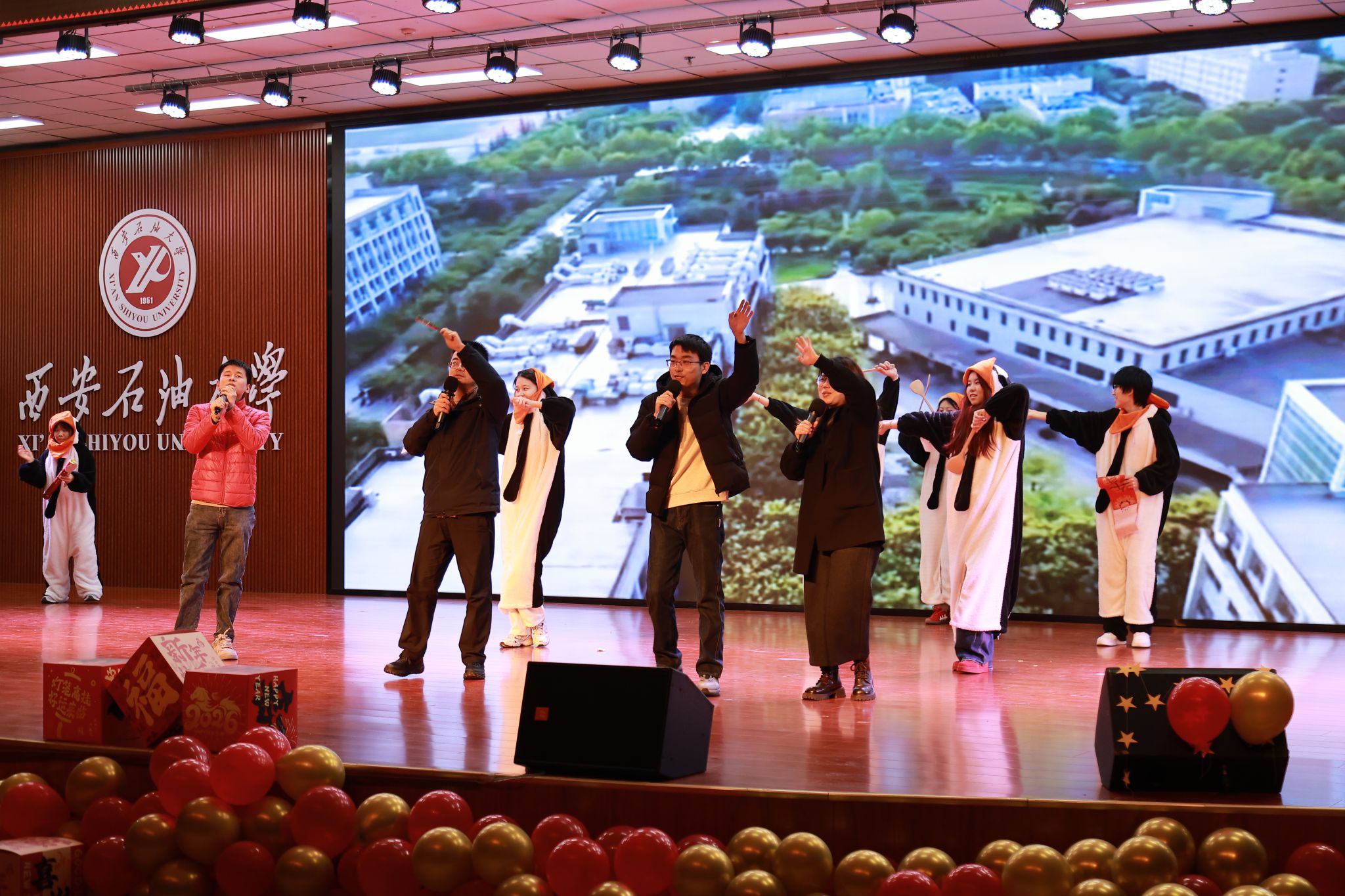 1月4日晚,計算機學(xué)院碼韻迎新·數(shù)聚芳華2026年新年晚會在鄠邑校區(qū)騰輝大學(xué)生活動中心舉行。學(xué)院師生300多人歡聚一堂,現(xiàn)場歡聲笑語,其樂融融。學(xué)院黨政領(lǐng)導(dǎo)龐秉謙、劉志坤、王瑩、張留美觀看了晚會。