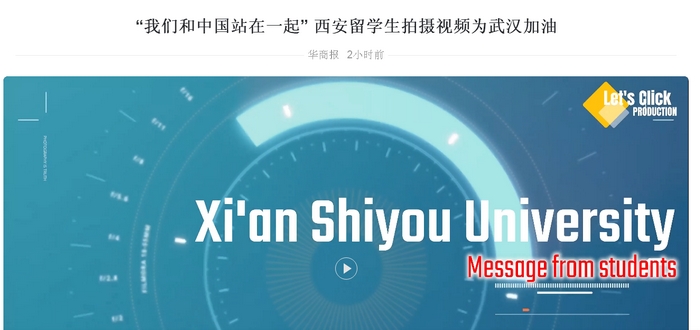 據(jù)了解,這段視頻的組織拍攝者是西安石油大學2018級地質(zhì)專業(yè)坦桑尼亞籍留學生George Steven(李博),李博稱,雖然是寒假,但他們這些留學生一直留在學校。疫情發(fā)生后,學校生活一切都好。他組織拍攝視頻,主要是為了表達西安石油大學留學生們對武漢人民的關心,所以他組織了學院來自不同國家的同學們用不用的語言來表達祝福,很幸運的是同學們都很支持他。李博說,錄制這段視頻主要有三個原因:一是表達對武漢以及全中國人民的人文關懷,“我們同為人類,我們一直在一起”;二是代表自己的國家表達關懷;第三,“我愛中國”。