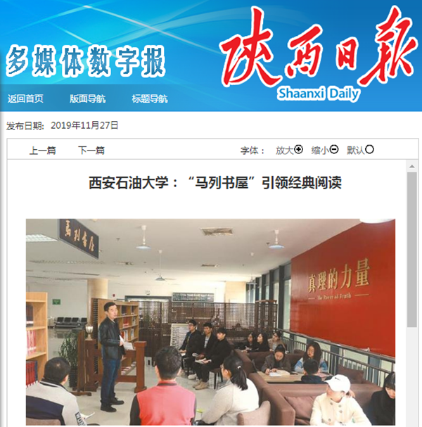 【陜西日?qǐng)?bào)】西安石油大學(xué):“馬列書屋”引領(lǐng)經(jīng)典閱讀