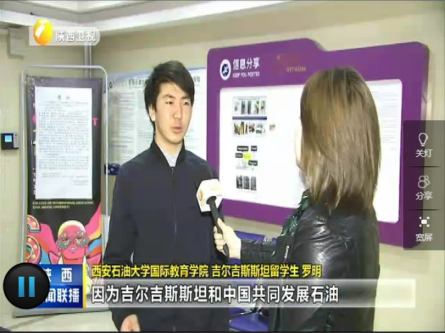 4月27日晚,《陜西新聞聯(lián)播》播出了《播撒合作的種子 收獲發(fā)展的果實——習近平主席在第二屆“一帶一路”國際合作高峰論壇開幕式上的主旨演講在我省各界引發(fā)熱烈反響》,其中對我校塔吉克斯坦留學生蘇波、吉爾吉斯斯坦留學生羅明進行了采訪,引起了普遍關注和較好反響。