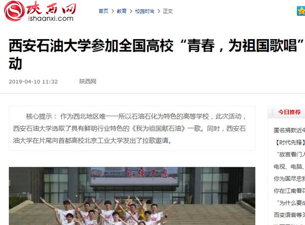 【陜西網(wǎng)】西安石油大學(xué)參加全國高?!扒啻海瑸樽鎳璩本W(wǎng)絡(luò)拉歌活動(dòng)