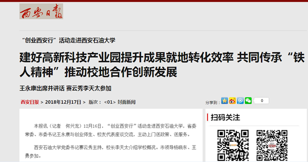 【西安日?qǐng)?bào)】“創(chuàng)業(yè)西安行”活動(dòng)走進(jìn)西安石油大學(xué)