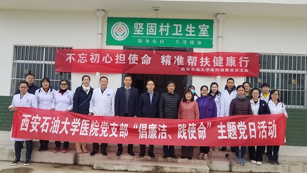 以黨支部為核心積極做好精準扶貧工作。校醫(yī)院負責(zé)對口幫扶2個精準扶貧單位,一個是市衛(wèi)計局指定的藍田縣輞川鎮(zhèn)甘家坪村,一個是學(xué)校對口的永壽縣永平鎮(zhèn)堅固村。黨支部帶領(lǐng)黨員和其他醫(yī)務(wù)人員把活動做到服務(wù)現(xiàn)場,支部每季度組織黨員干部赴藍田縣輞川鎮(zhèn)甘家坪村精準扶貧健康幫扶義診活動,每季度赴永壽縣永平鎮(zhèn)堅固村對口的開展義診活動,幫助對口村建設(shè)標準化衛(wèi)生室。共為200余名村民進行了健康查體工作,建立了健康檔案200余份,還為對口扶貧戶提供啟動創(chuàng)業(yè)基金,為幫扶對象送去慰問金和生活必需品等。開展健康幫扶義診活動使黨員干部深入基層了解群眾疾苦,零距離診療,提高村民健康水平和生活質(zhì)量,以實際行動“抓黨建,促脫貧”,體現(xiàn)了黨員的社會責(zé)任和擔(dān)當(dāng),增強為民服務(wù)的意識,健康幫扶活動得到了群眾的好評和贊譽,以實際行動表達了在學(xué)校黨委領(lǐng)導(dǎo)下,打贏脫貧攻堅戰(zhàn)的信心和決心。