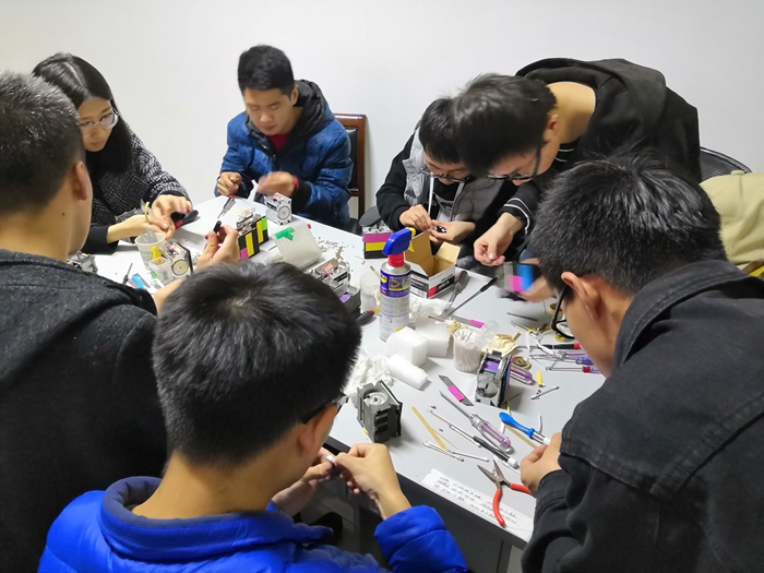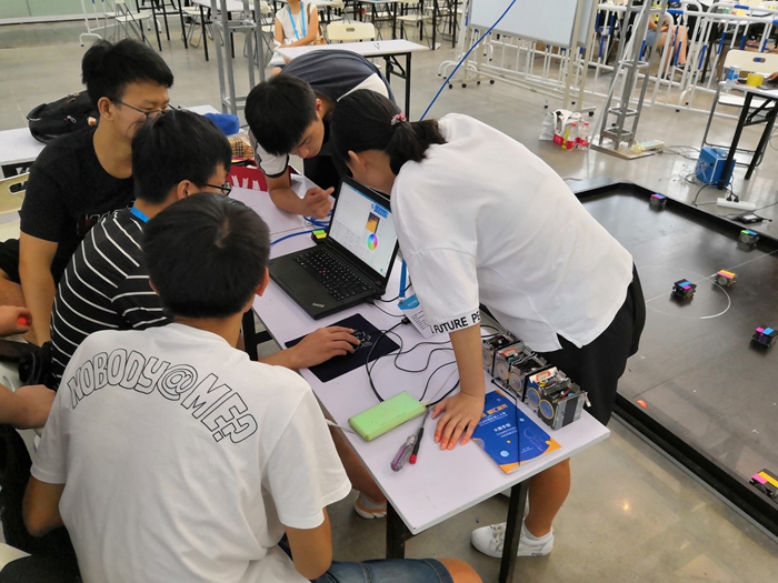 同學們對機器人進行日常維護