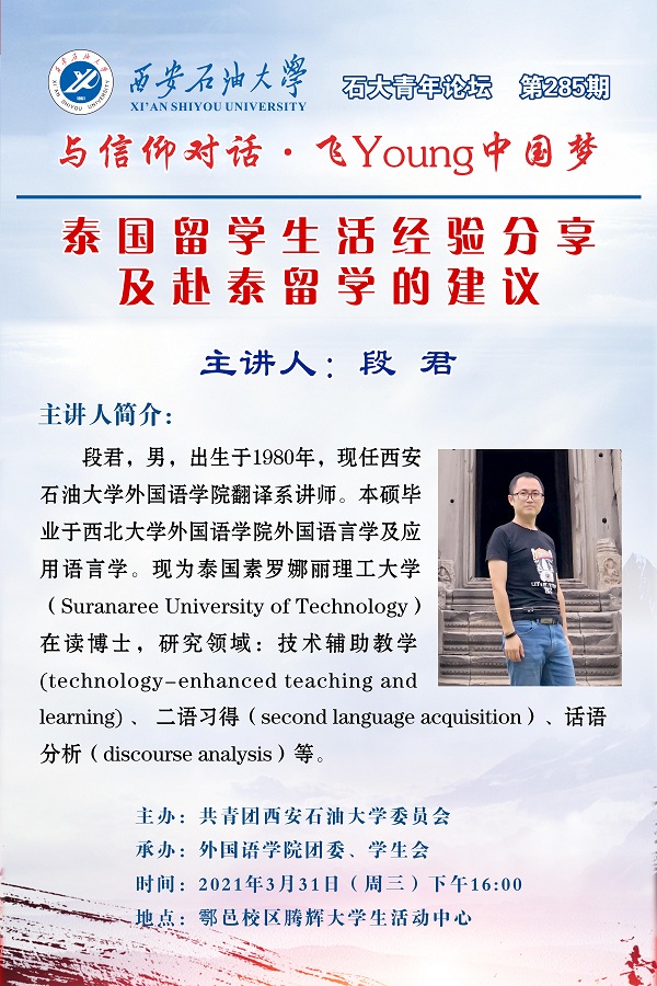 石大青年論壇第285期:泰國(guó)留學(xué)生活經(jīng)驗(yàn)分享及赴泰留學(xué)的建議